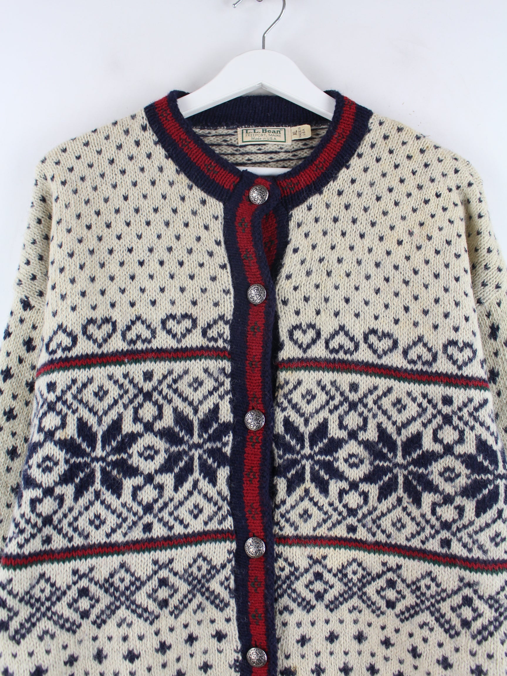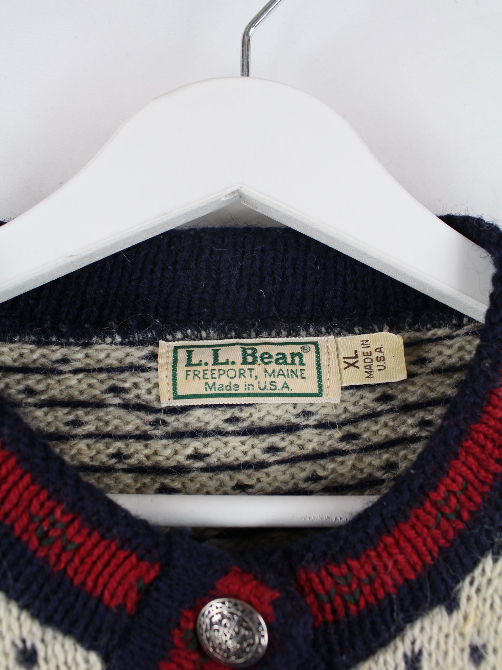 Beigefarbene Strickjacke der Brand LL Bean aus den 90'ern in Größe XL. Sie ist aus einer Wollmischung produziert und in gutem Zustand in Stock.