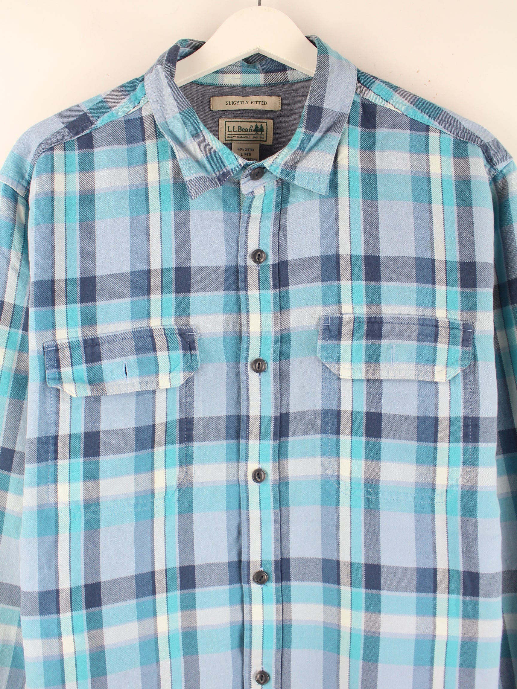 L.L. Bean Slightly Fittted Checked Hemd Blau L