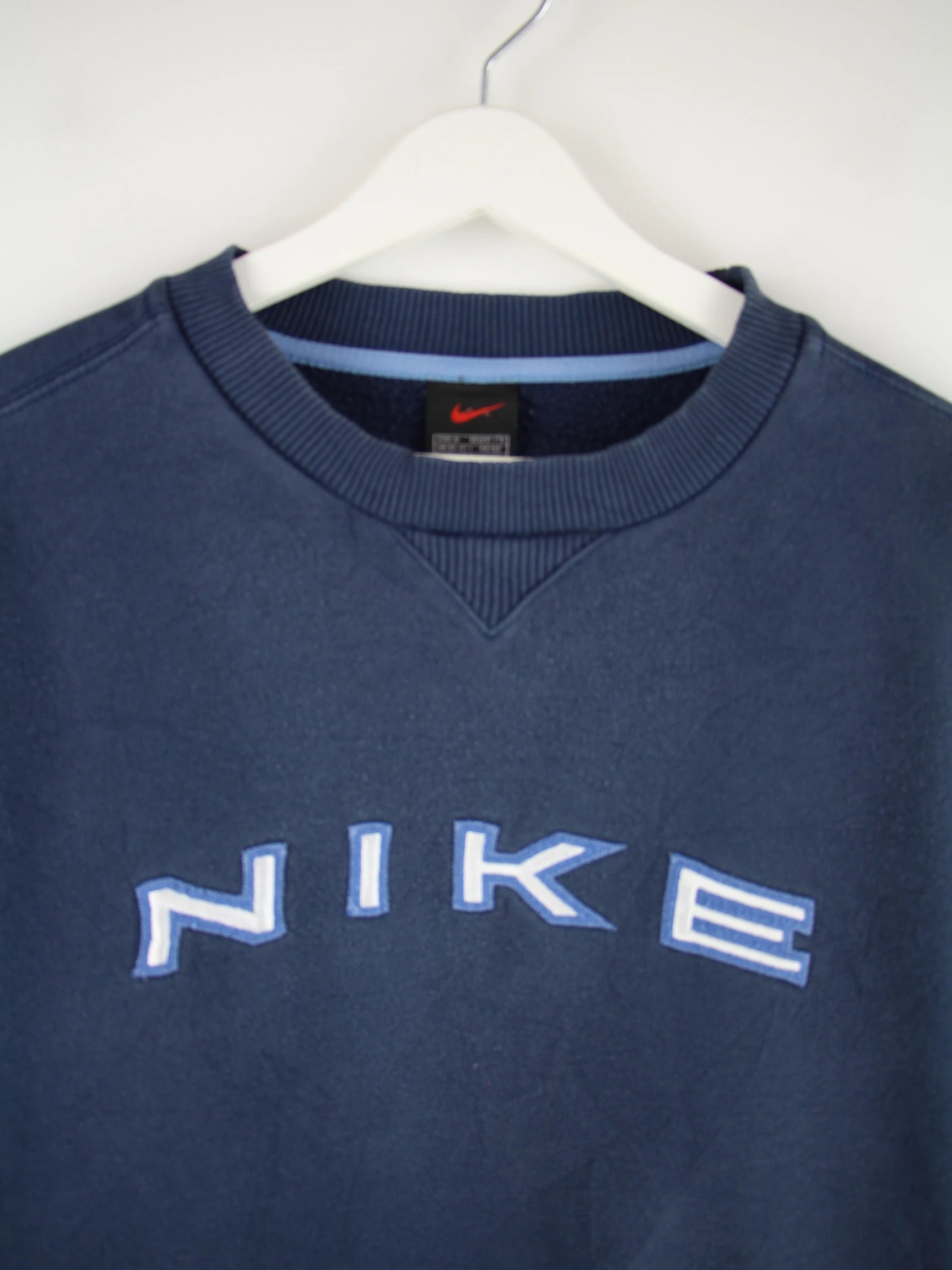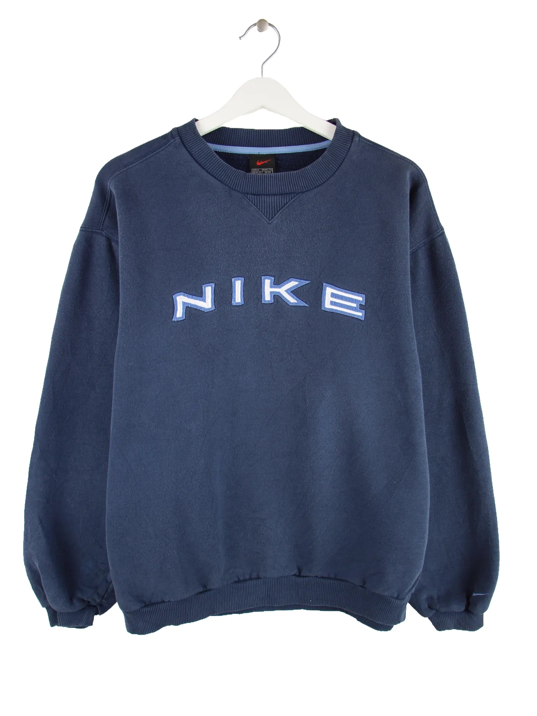 Sweater der Brand Nike in Größe M. Er ist aus einer Baumwollmischung gemacht und in Blau in Stock.