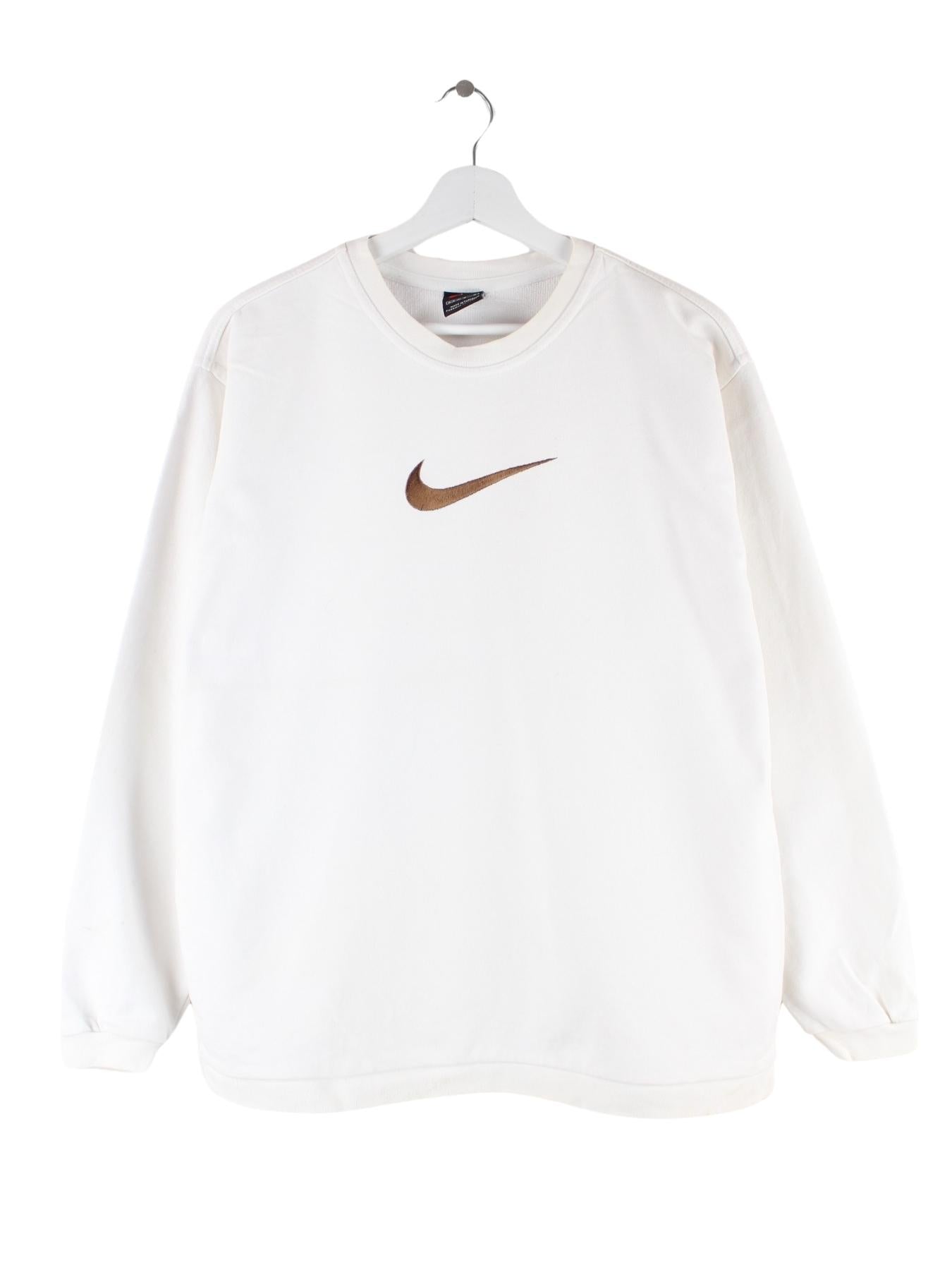 Nike 90s Vintage Big Swoosh Embroidered Sweater Weiß M