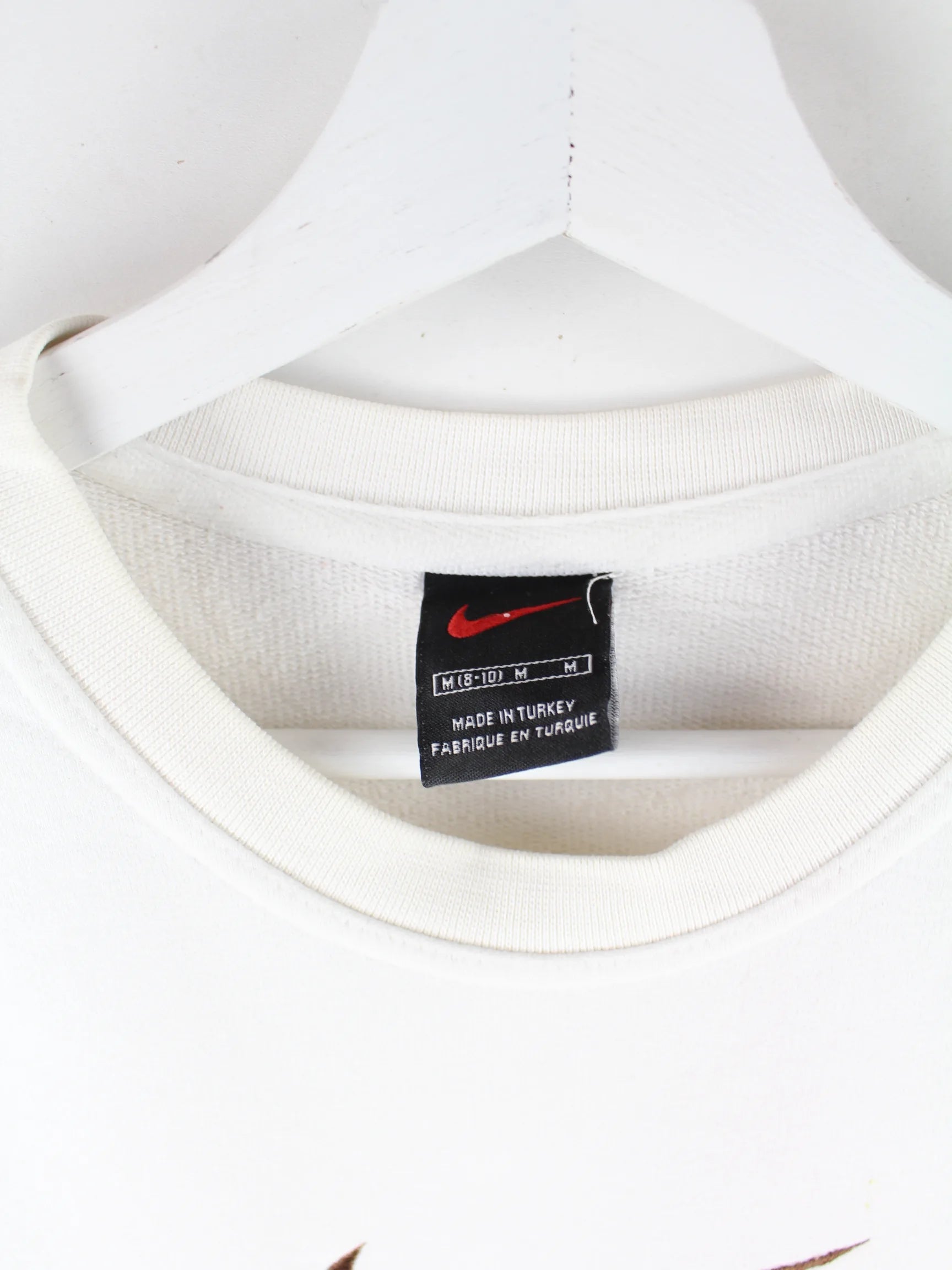 Weißer Sweater mit gesticktem Logo aus dem Hause Nike aus den 90'ern in Größe M. Er ist aus einer Baumwollmischung und in gutem Zustand im Angebot.
