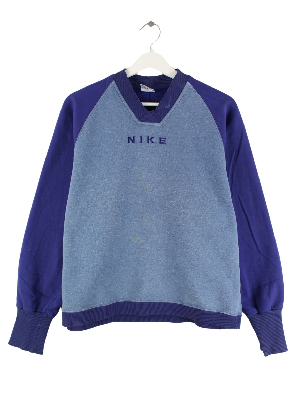 Nike 90s Vintage V-Neck Big Swoosh Sweater Blau S
