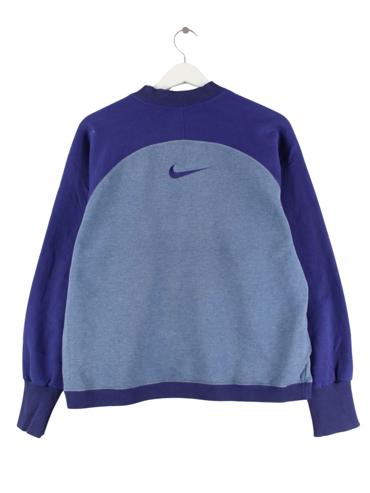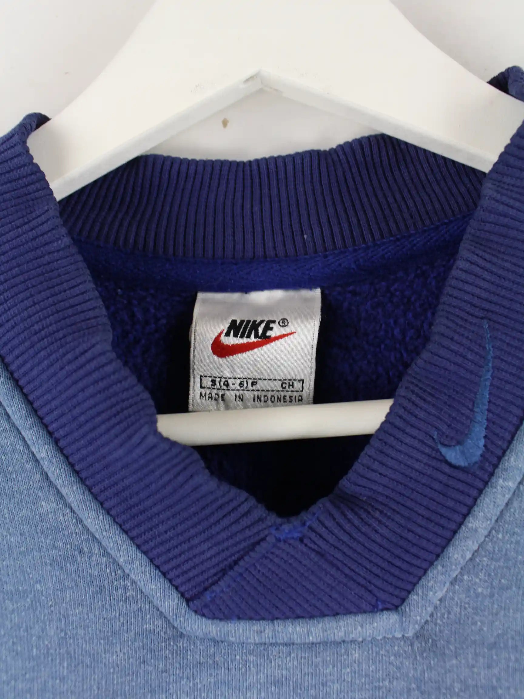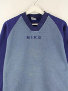 Sweater der Brand Nike in Größe S aus den 90'ern. Er ist aus einer Baumwollmischung produziert und in Blau zu haben.