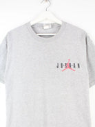 T-Shirt von Nike in Größe M aus den 90'ern. Es ist aus Baumwolle und in Grau bei uns zu bekommen. Mit schönem Jordan Print.