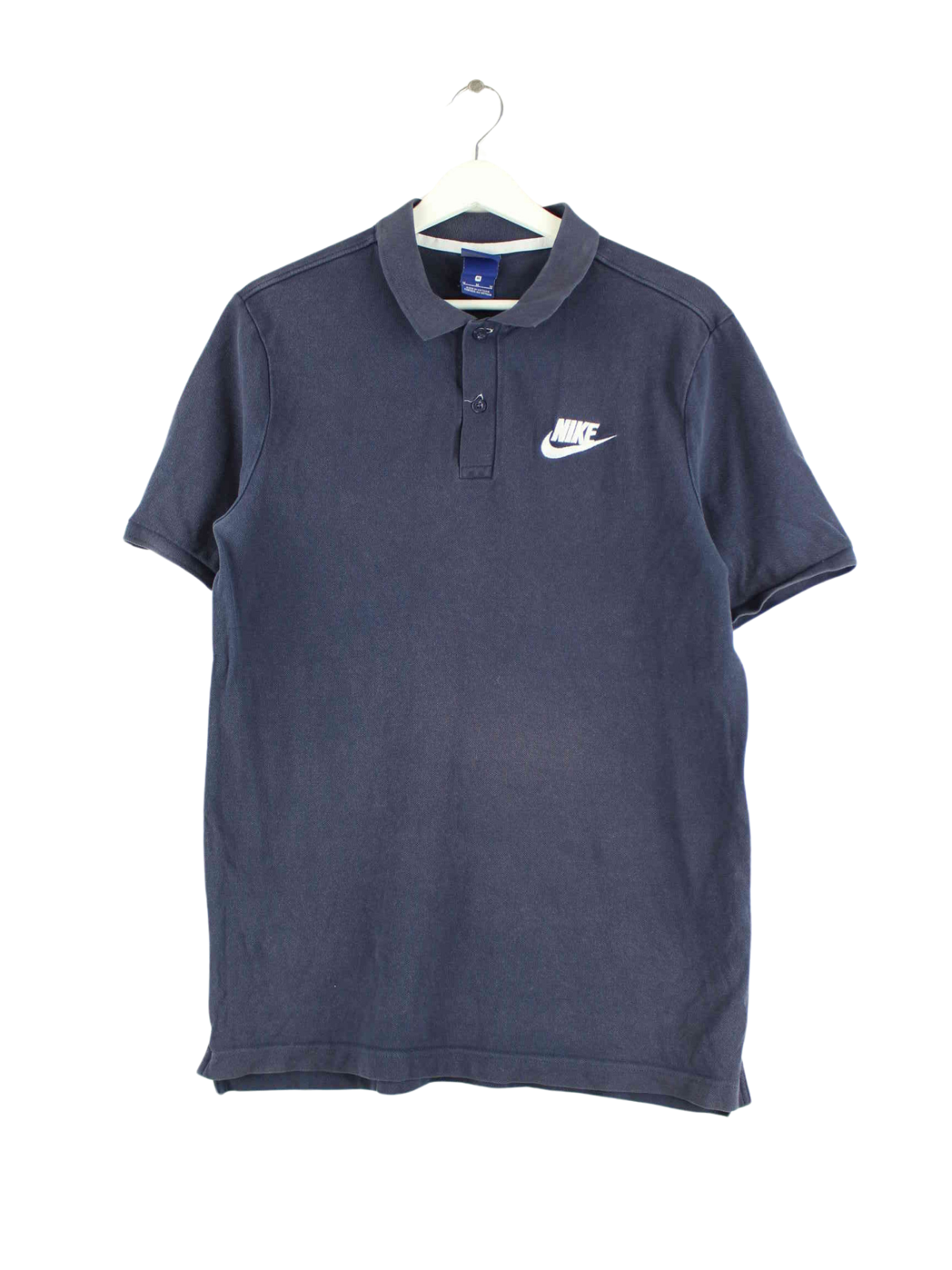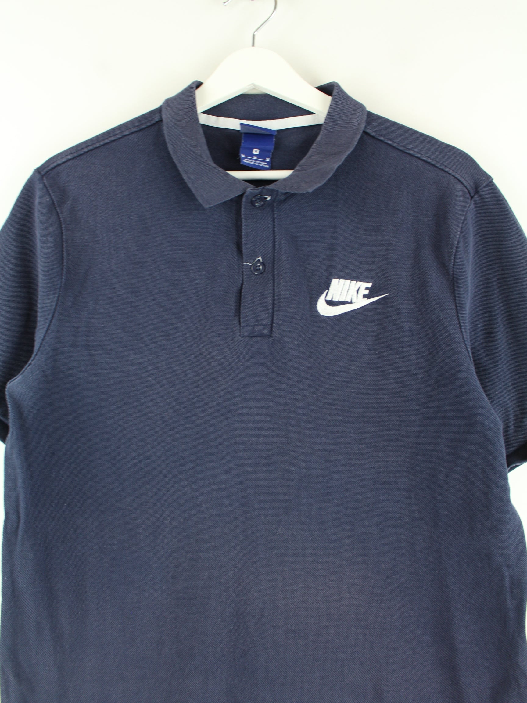 Blaues Poloshirt des Labels Nike in Größe M. Es ist aus Baumwolle produziert und in sehr gutem Zustand bei uns vorrätig.