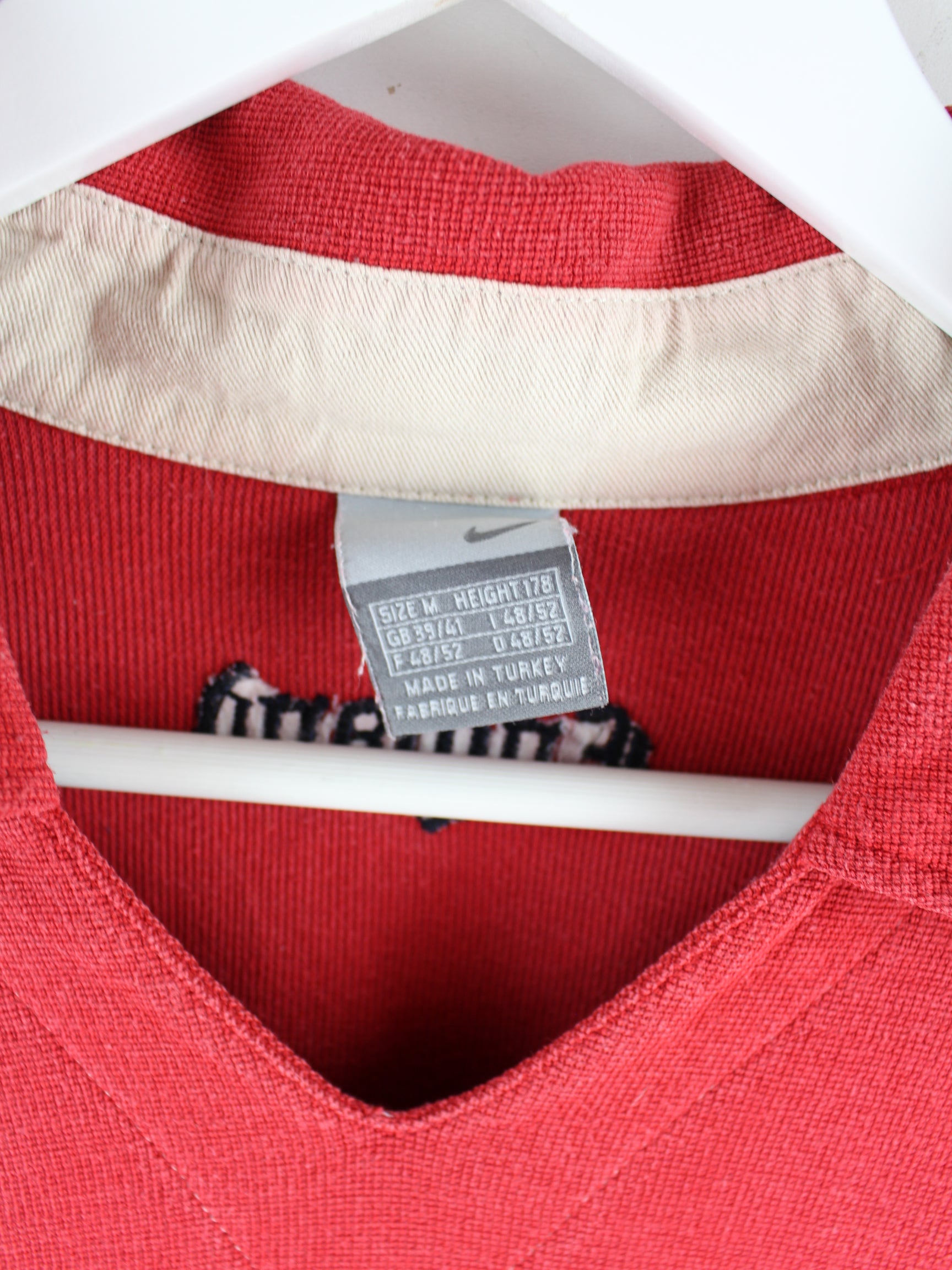 Poloshirt vom Label Nike mit Stick in Größe M aus Anfang der 2000'er. Es ist aus Baumwolle gefertigt und in Rot im Bestand.