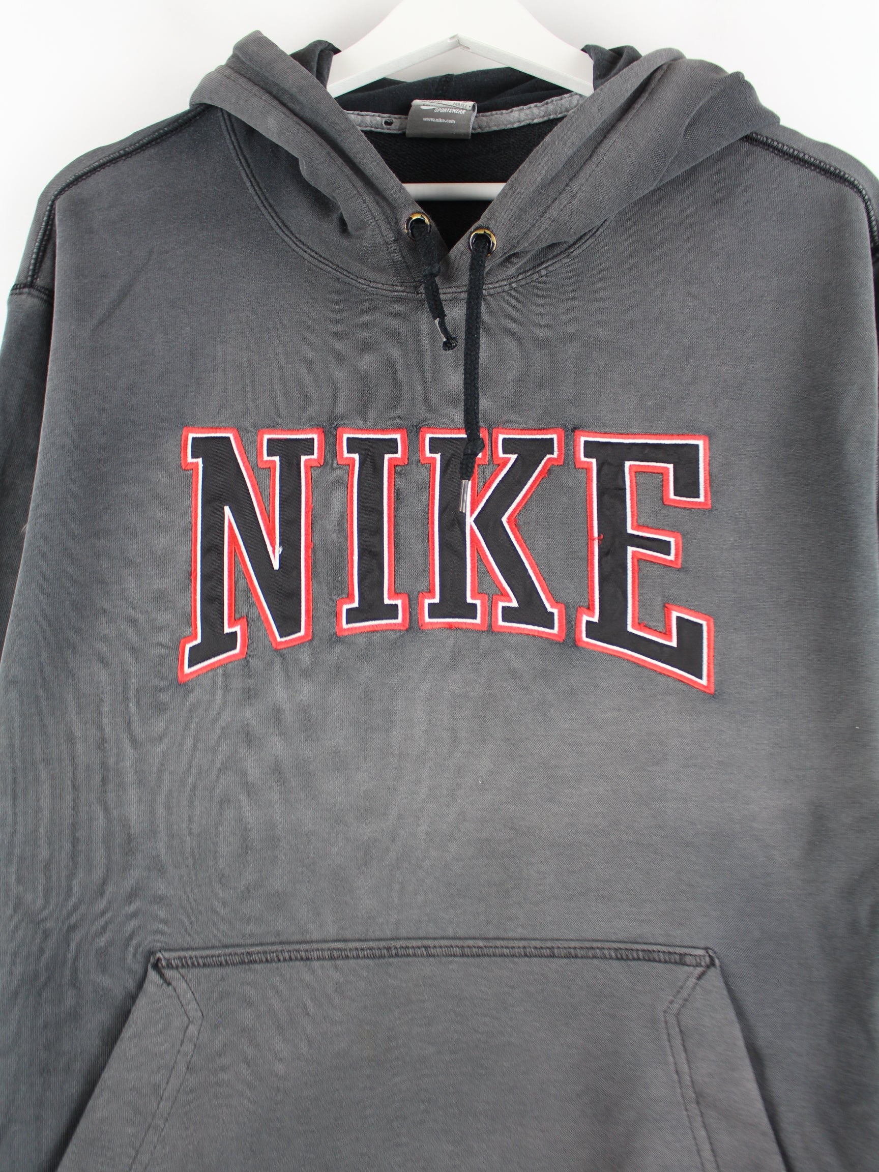 Grauer Hoodie mit Stick von Nike aus Anfang der 2000'er in Größe M. Er ist aus einer Baumwollmischung gemacht und in gutem Zustand zu haben.