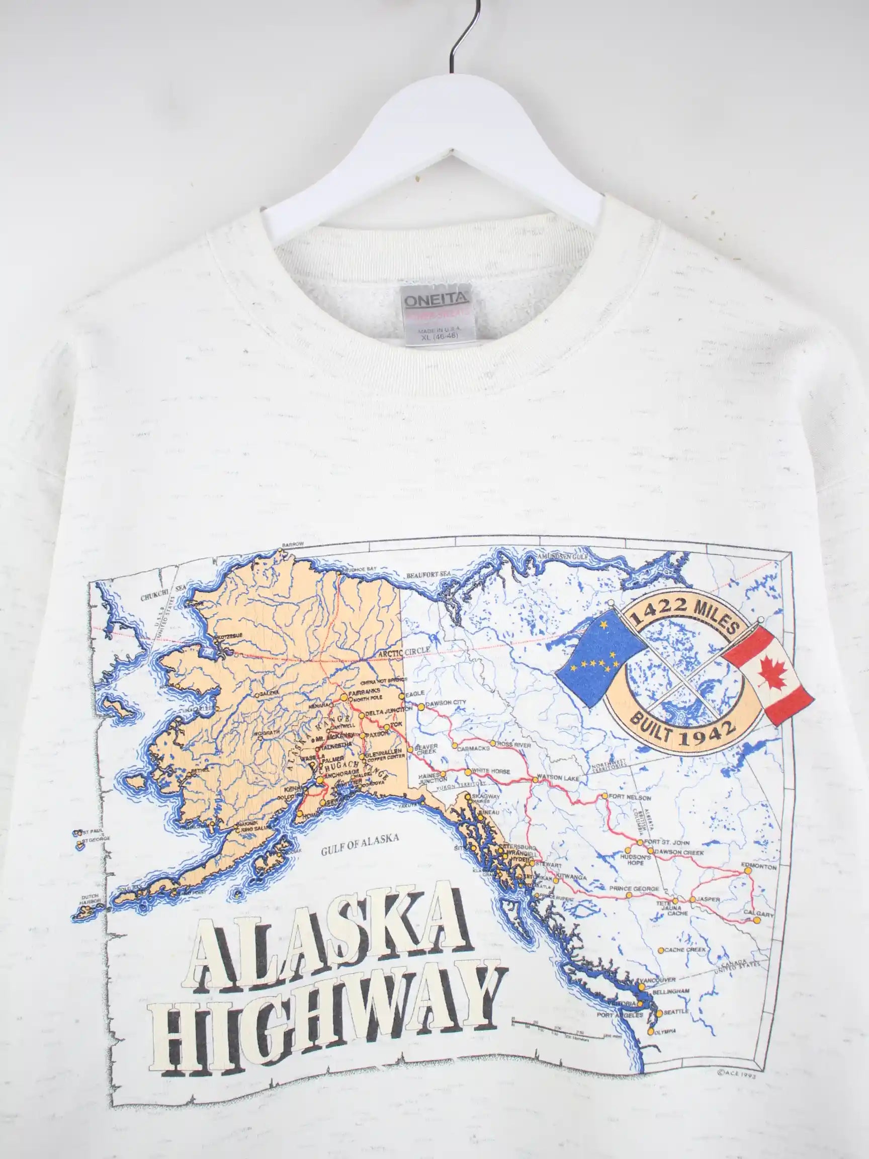 Oneita 90s Vintage Alaska Highway Print Sweater Grau XL