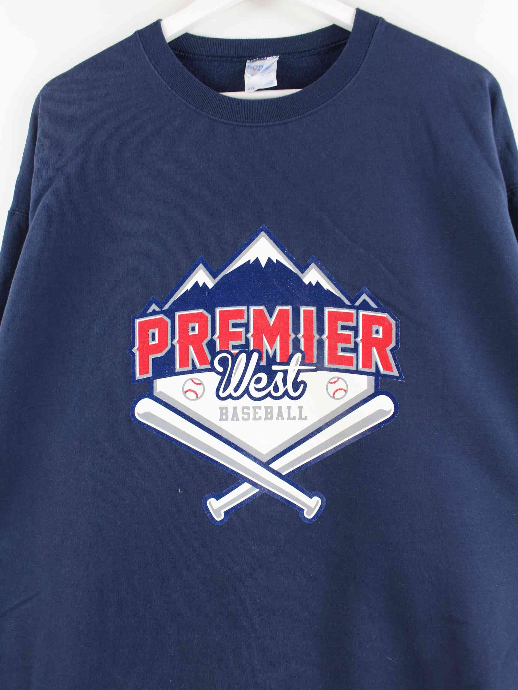 Blauer Sweater der Marke Port & Company in Größe XXL. Er ist aus einer Baumwollmischung und in sehr gutem Zustand on Stock.