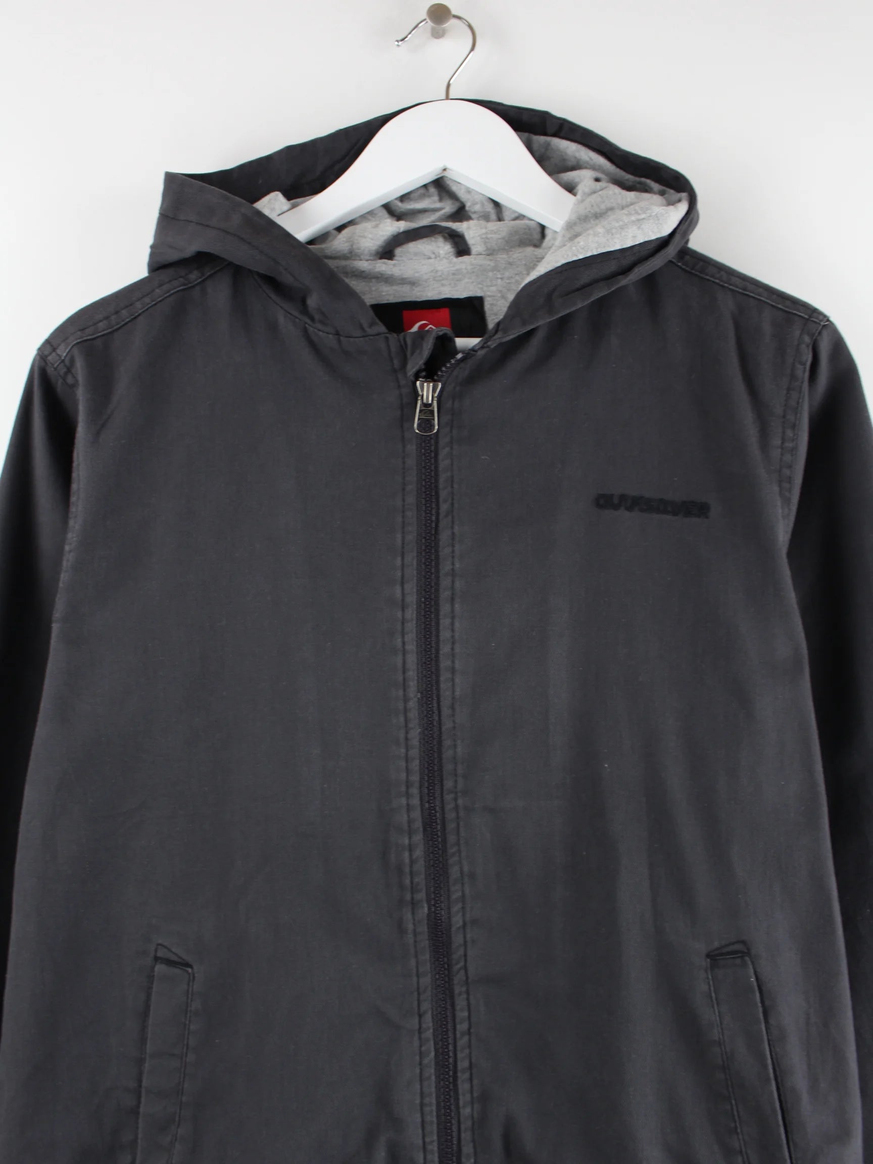 Grauer Hoodie mit Reißverschluß vom Label Quiksilver in Größe XS. Er ist aus einer Baumwollmischung produziert und in gutem Zustand auf Lager.