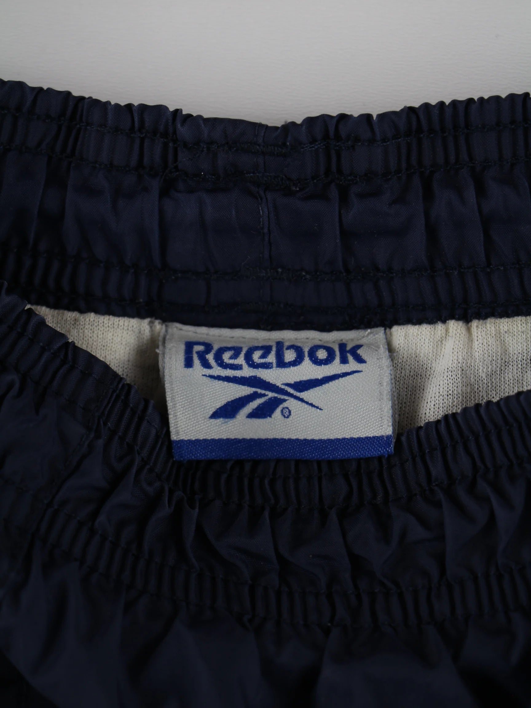 Blaue Track Pants von Reebok in Größe M. Sie sind aus Synthetik angefertigt und in gutem Zustand lieferbar.