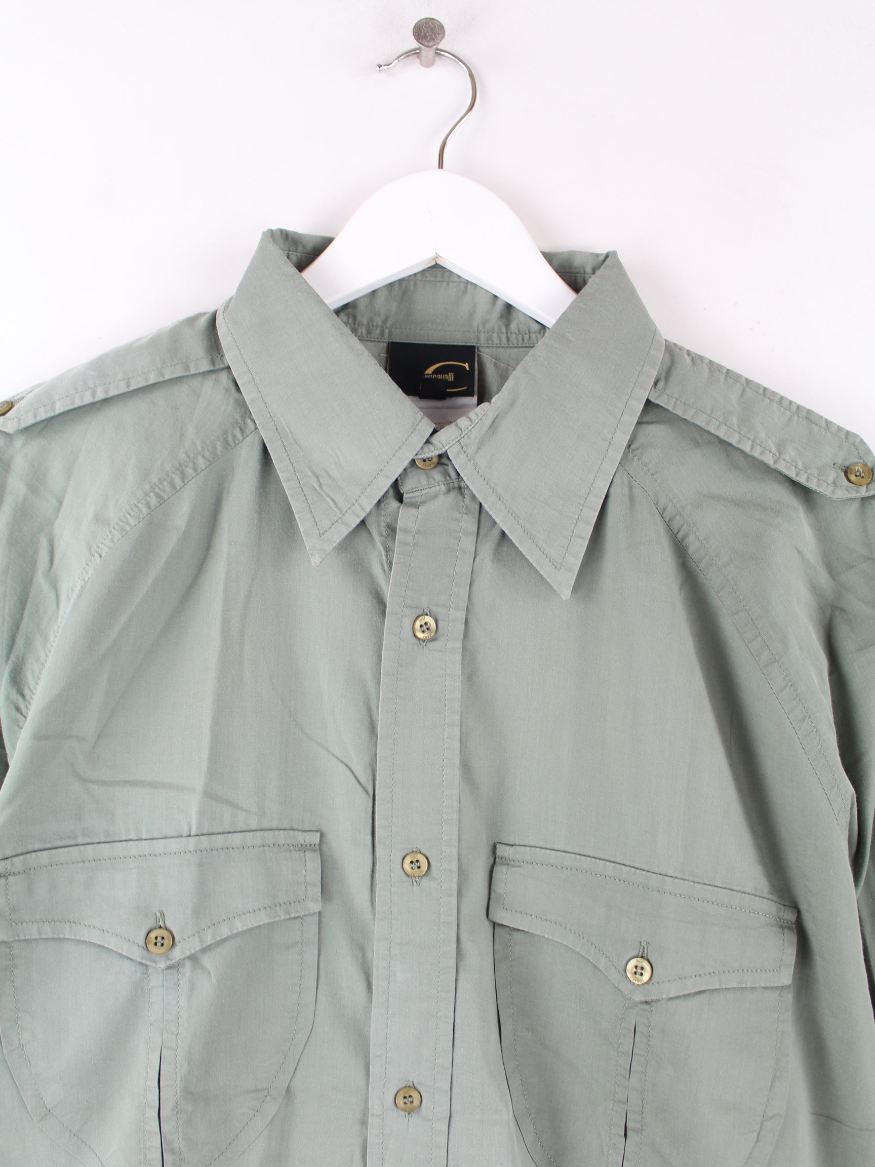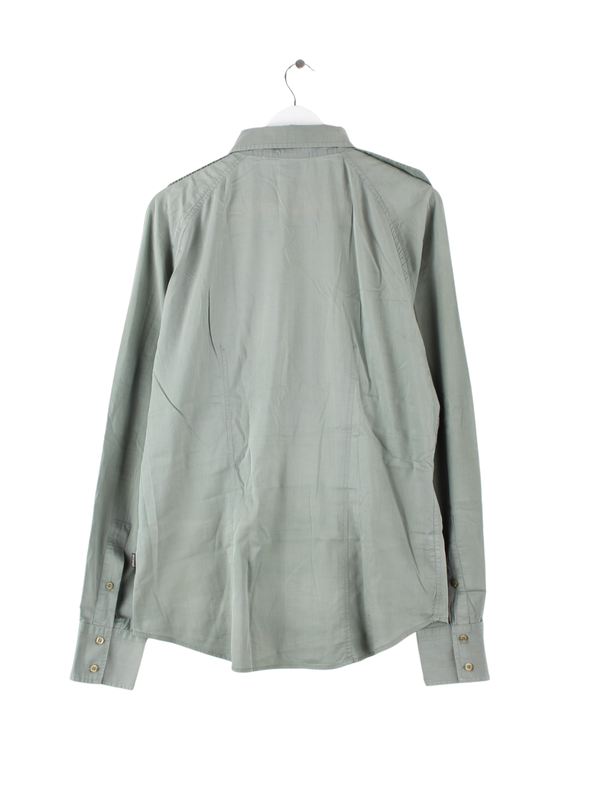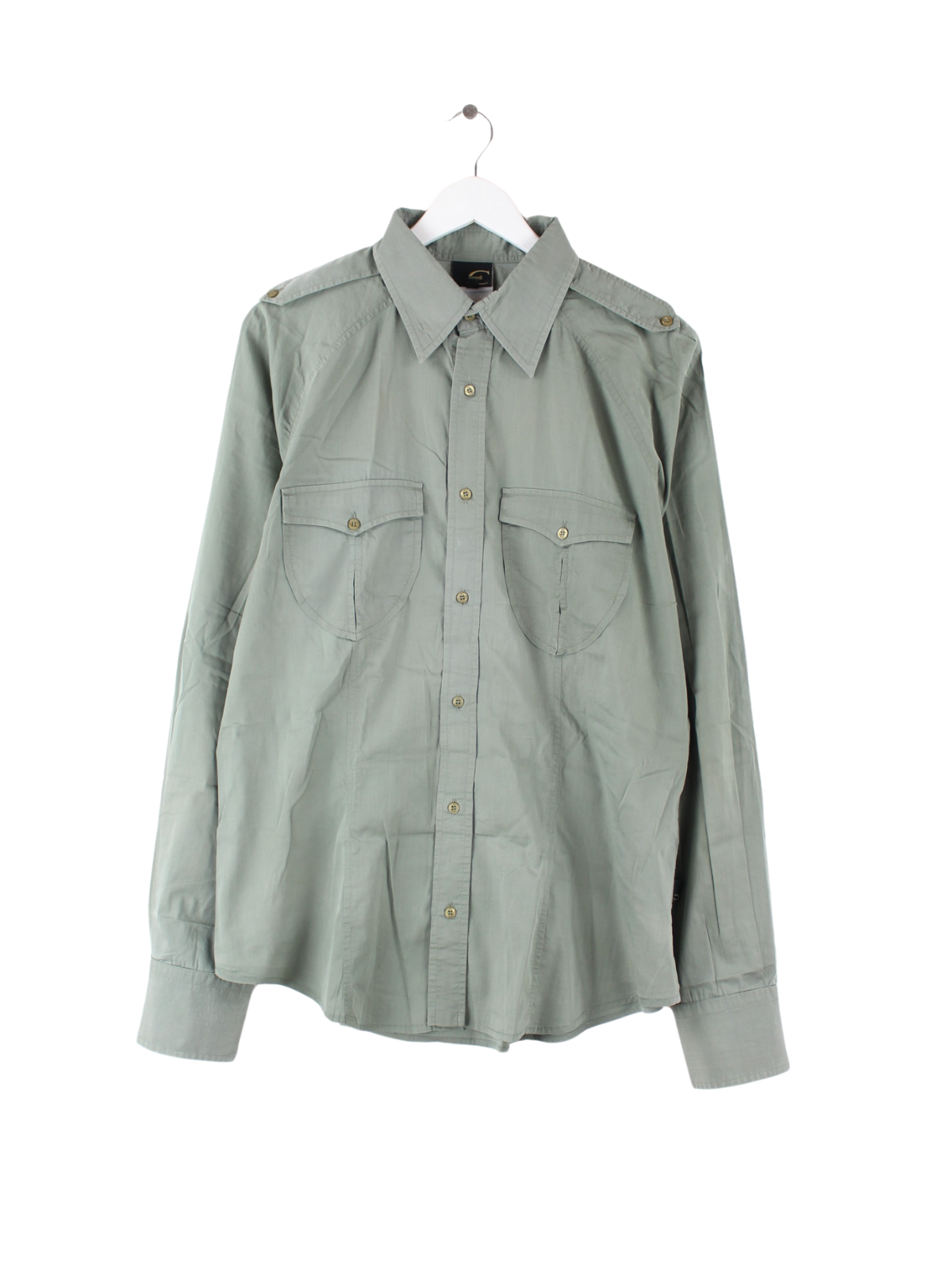 Grünes Hemd des Labels Roberto Cavalli in Größe XL. Es ist aus Baumwolle produziert und in sehr gutem Zustand auf Lager.