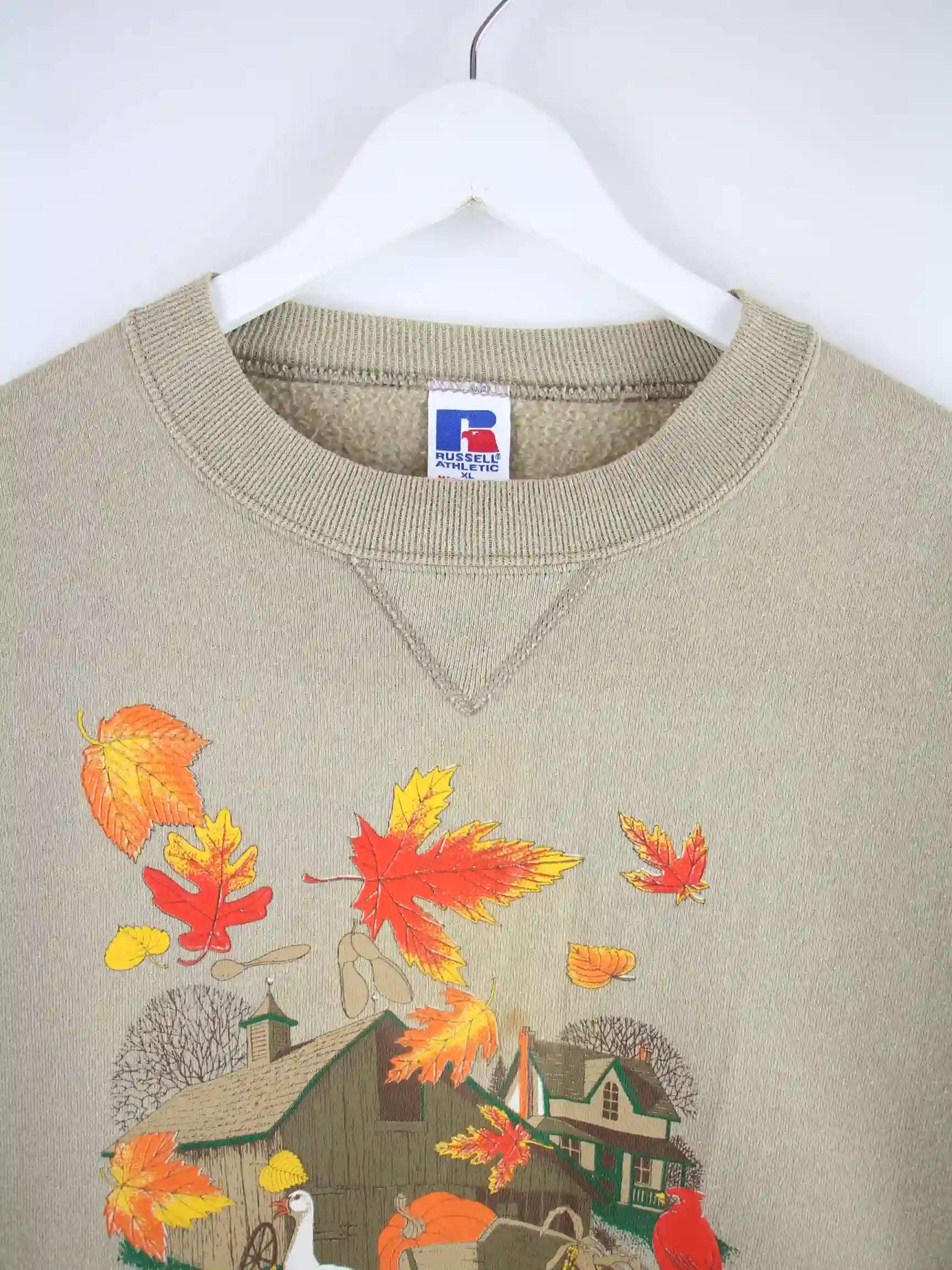 Russell Athletic 90s Vintage Autumn Print Sweater Braun XL