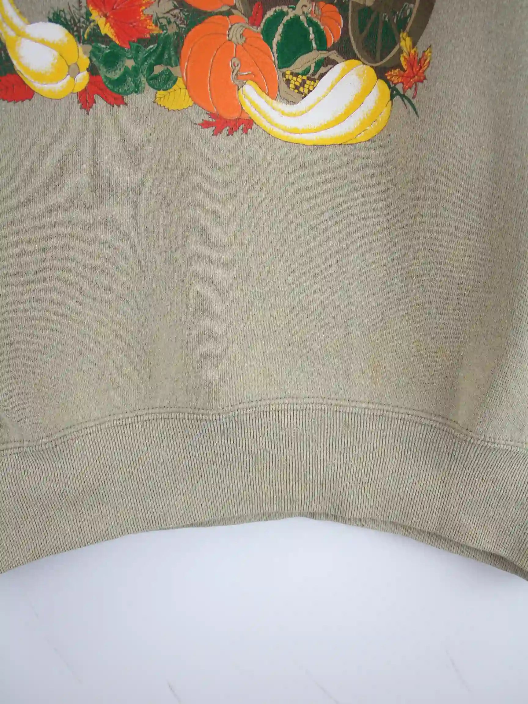 Sweater vom Label Russell Athletic in Größe XL aus den 90'ern. Er ist aus einer Baumwollmischung gefertigt und in Braun zu haben. Mit schickem Autumn Print.