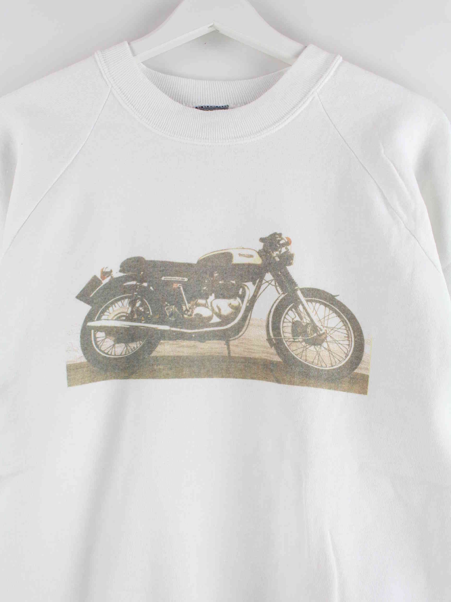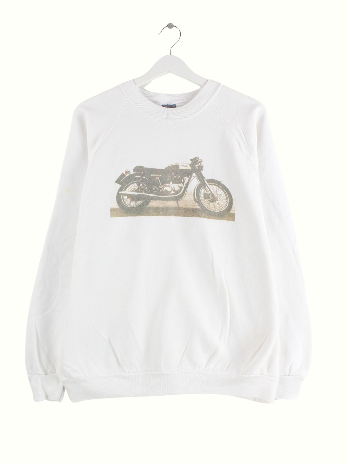 Screen Stars 80s Vintage Motorcycle Print Sweater Weiß M