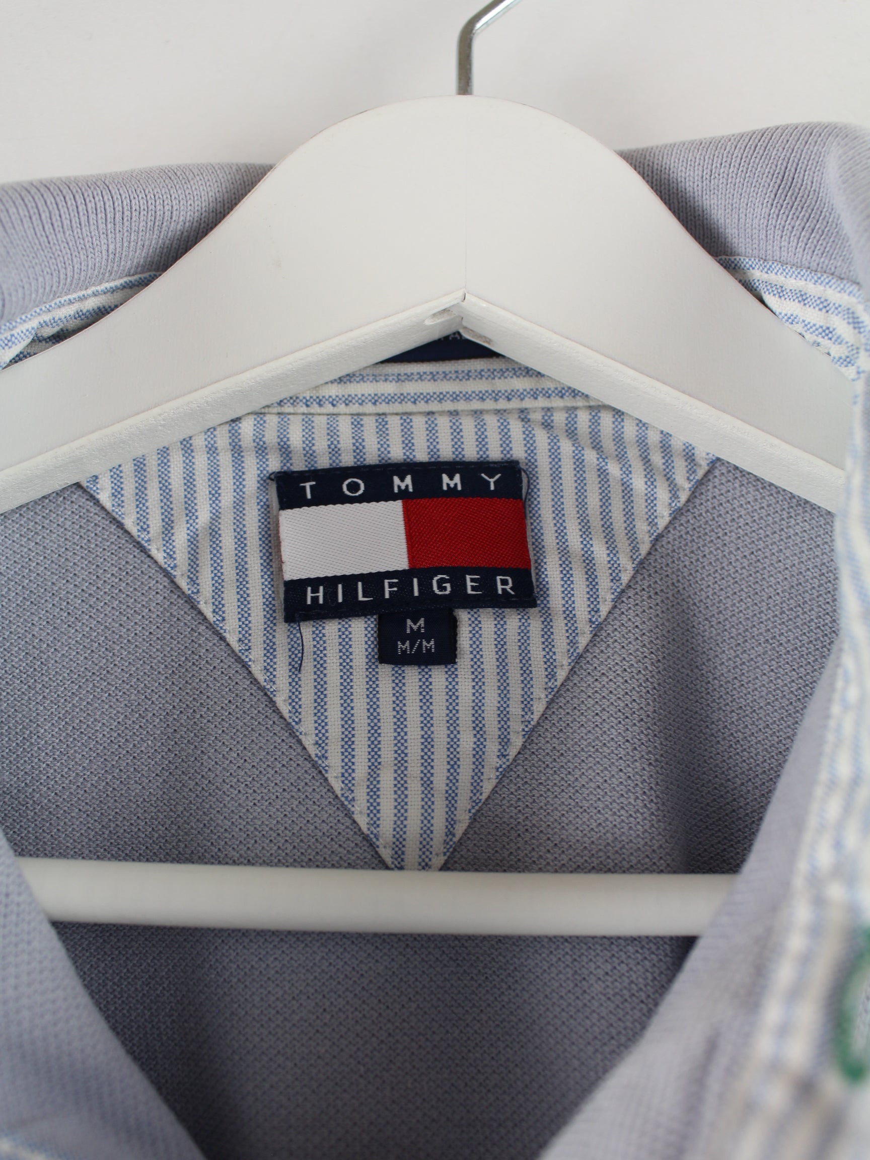 Poloshirt der Marke Tommy Hilfiger in Größe M aus den 90'ern. Es ist aus Baumwolle produziert und in Blau in Stock.