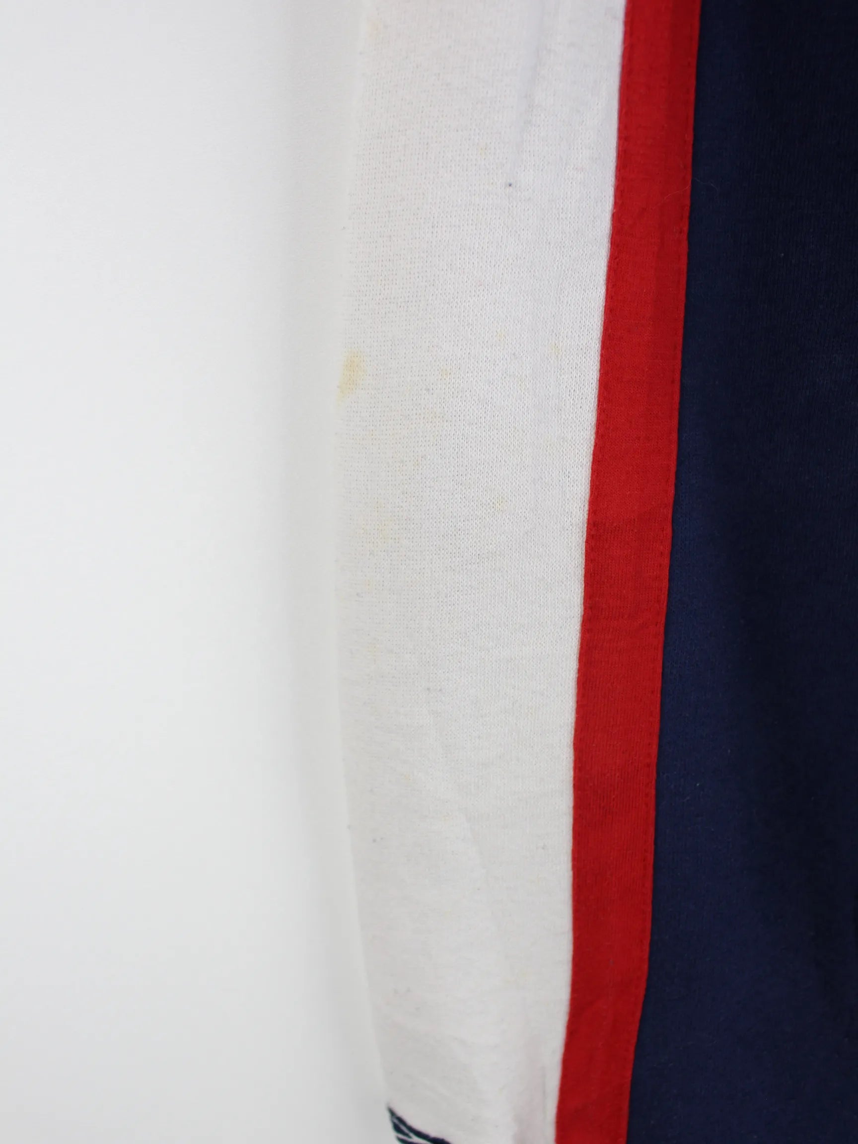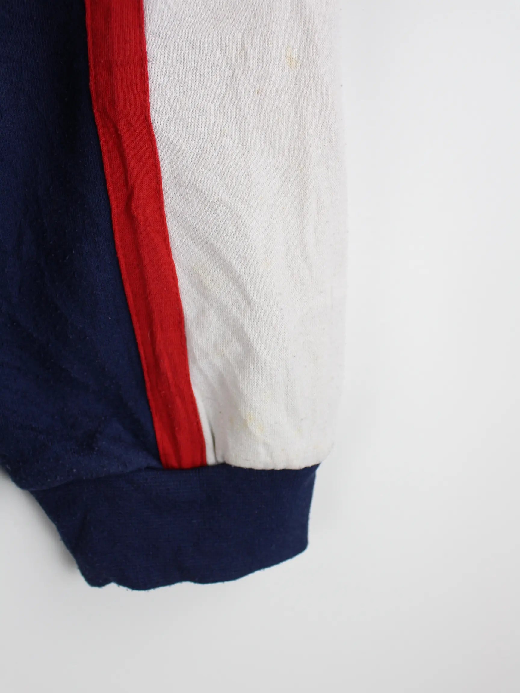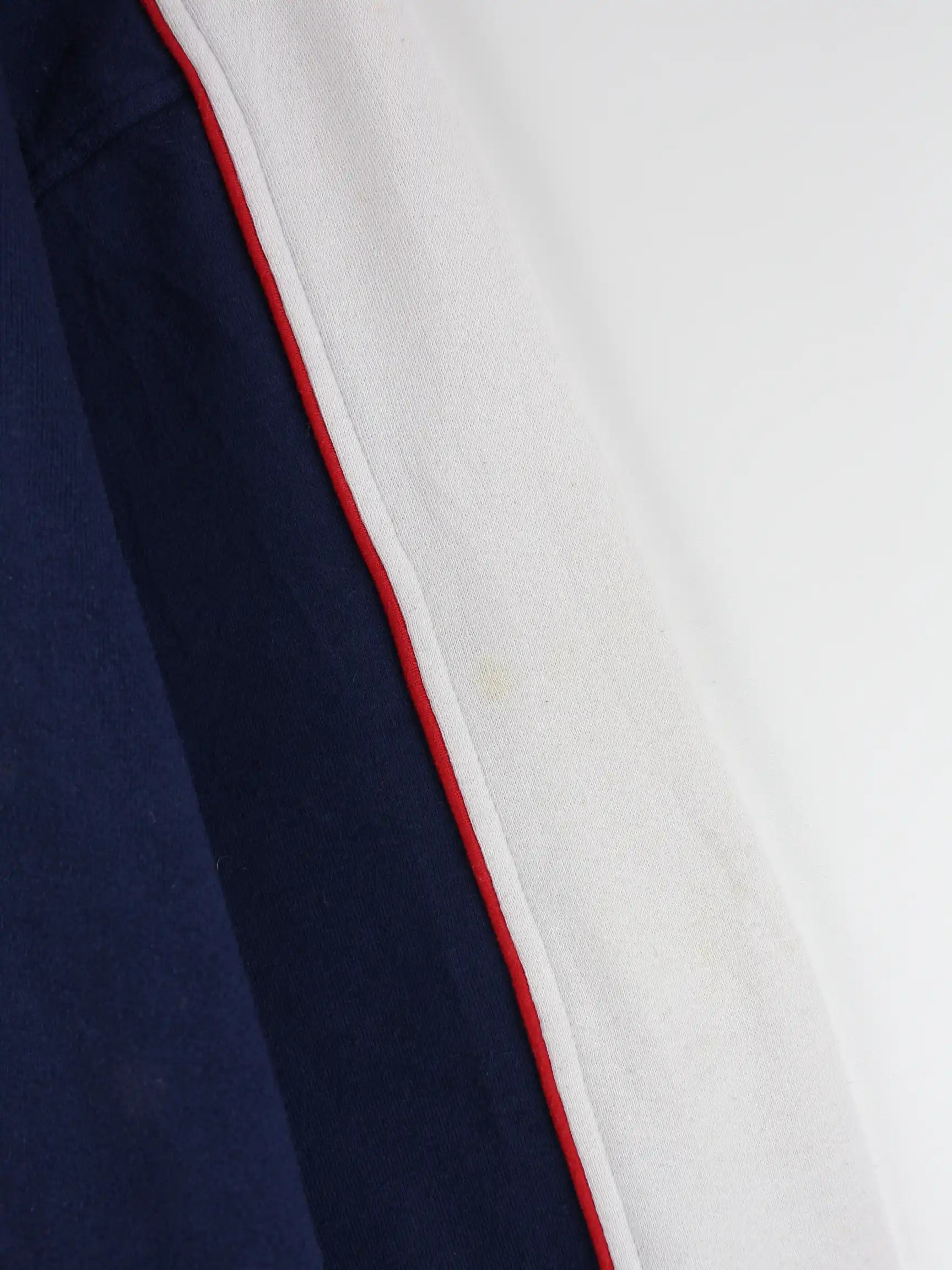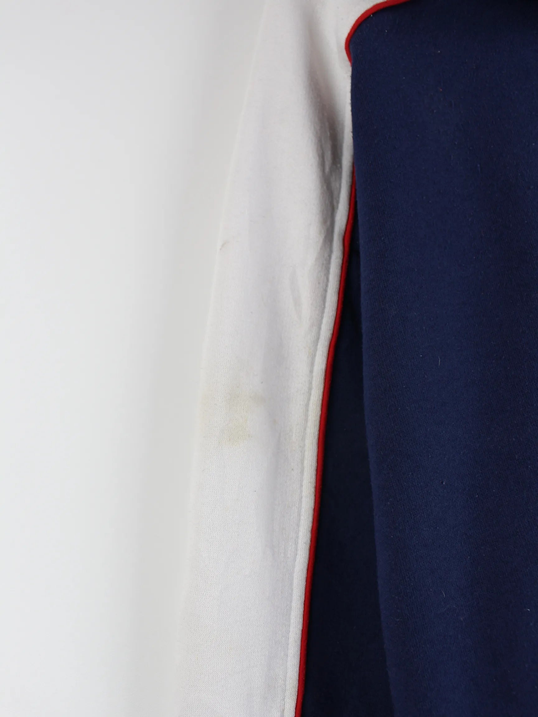Hoodie der Marke Umbro mit durchgehendem Reißverschluß in Größe XXL aus den 90'ern. Er ist aus einer Baumwollmischung gefertigt und in Blau bei uns vorrätig.