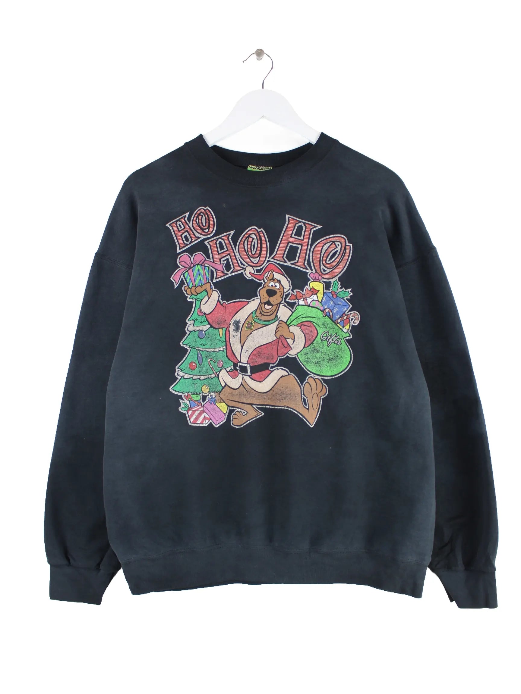Vintage 00s Scooby Doo Christmas Print Faded Sweater Schwarz L