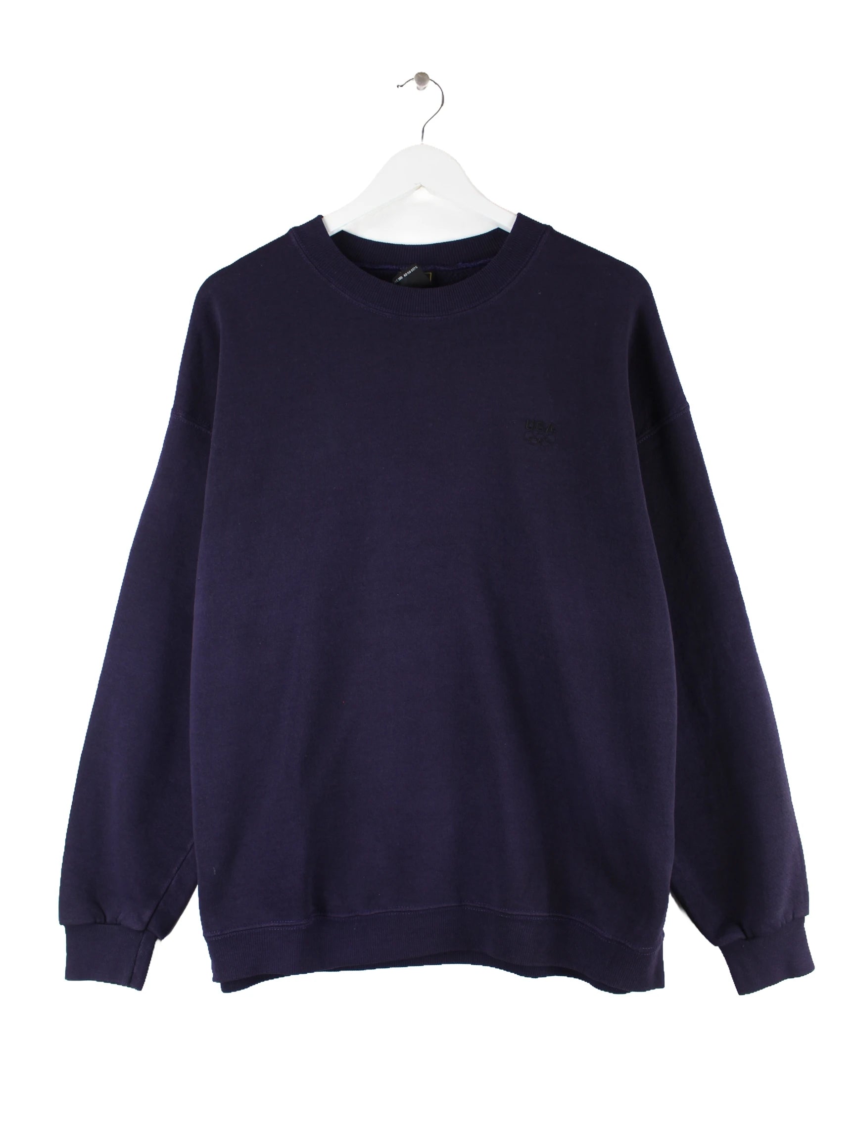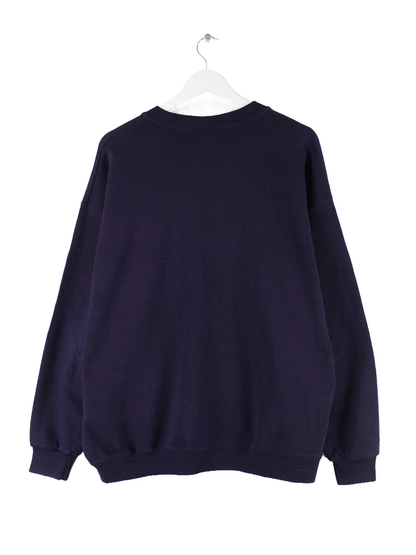 Lilafarbener Vintage Sweater in Größe XL. Er ist aus einer Baumwollmischung angefertigt und in gutem Zustand bei uns vorrätig.
