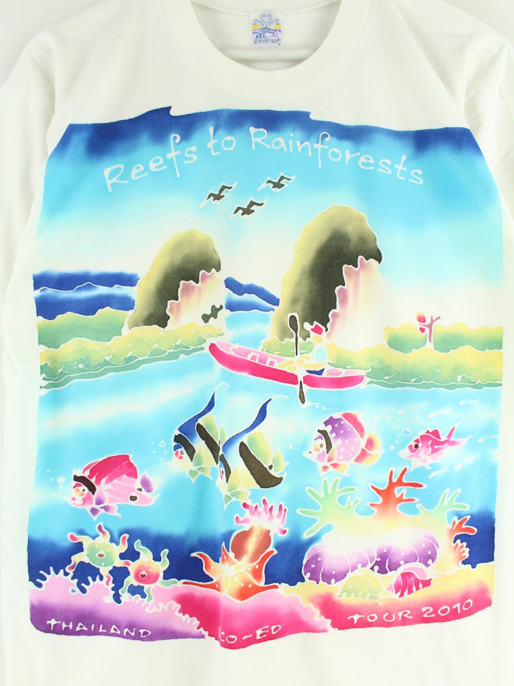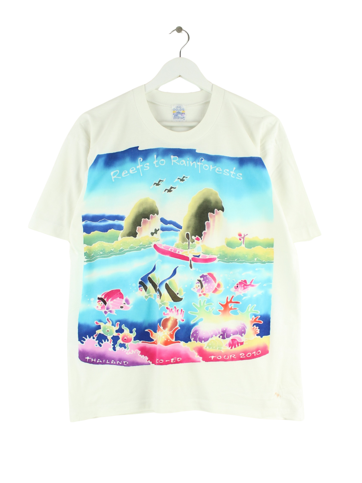 Vintage 80s Rainforest Print Single Stitched T-Shirt Weiß M