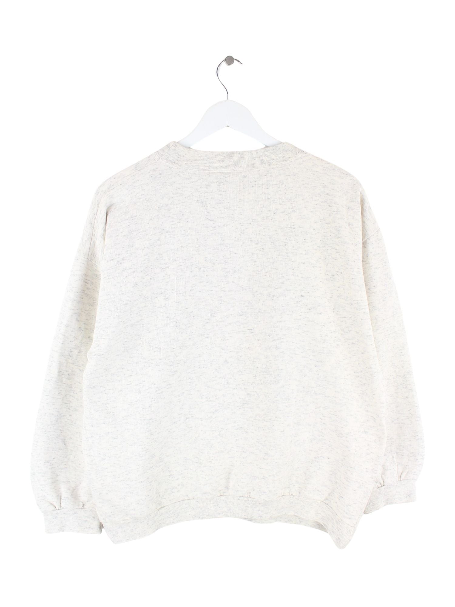 Grauer Vintage Sweater mit Stickereien aus den 80'ern in Größe M. Er ist aus einer Baumwollmischung . Den Zustand würden wir als 'In Ordnung' bezeichnen (vergl. Bilder).