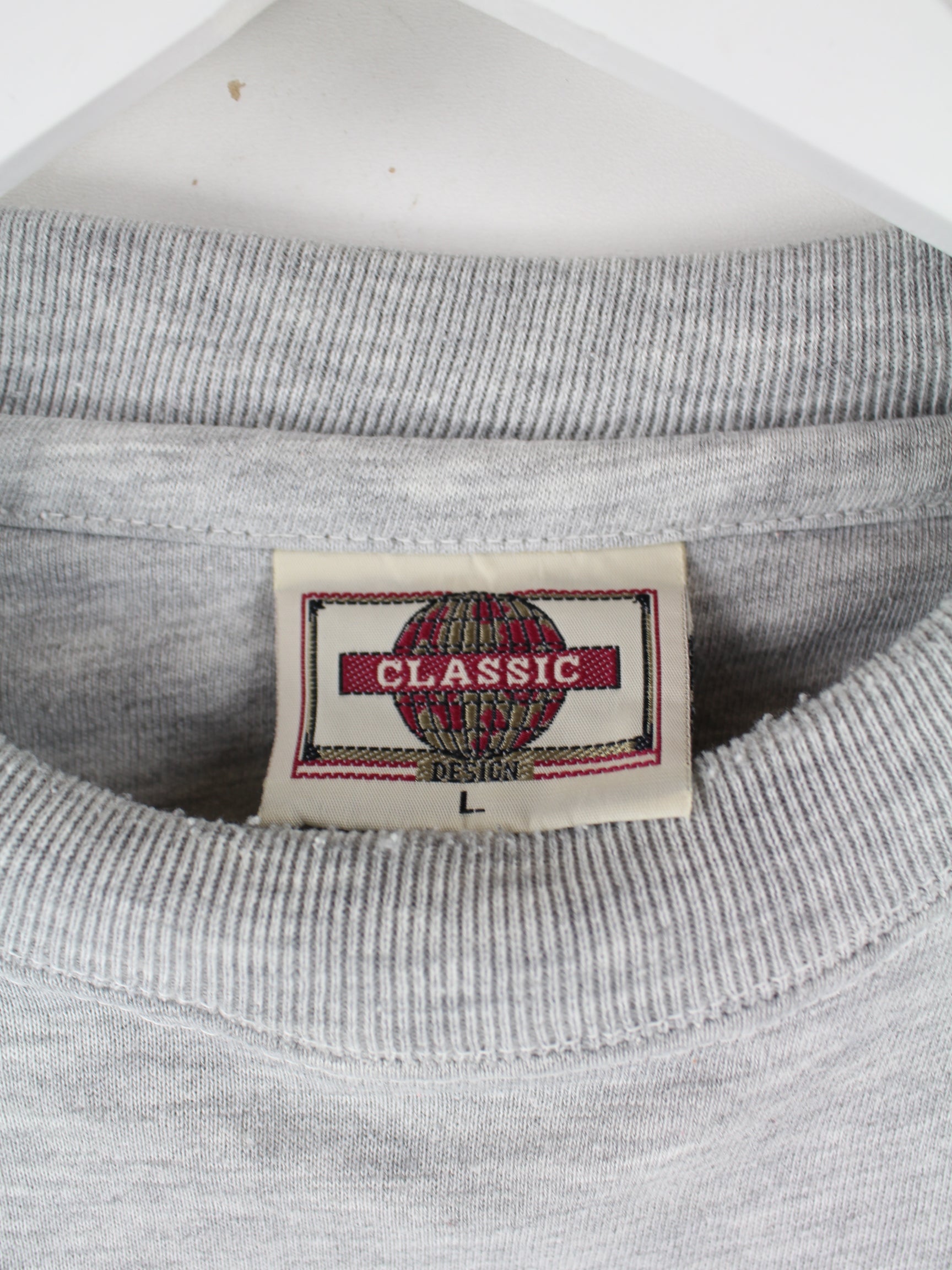 Vintage Sweater in Größe L aus den 90'ern. Er ist aus einer Baumwollmischung hergestellt und in Grau in Stock.