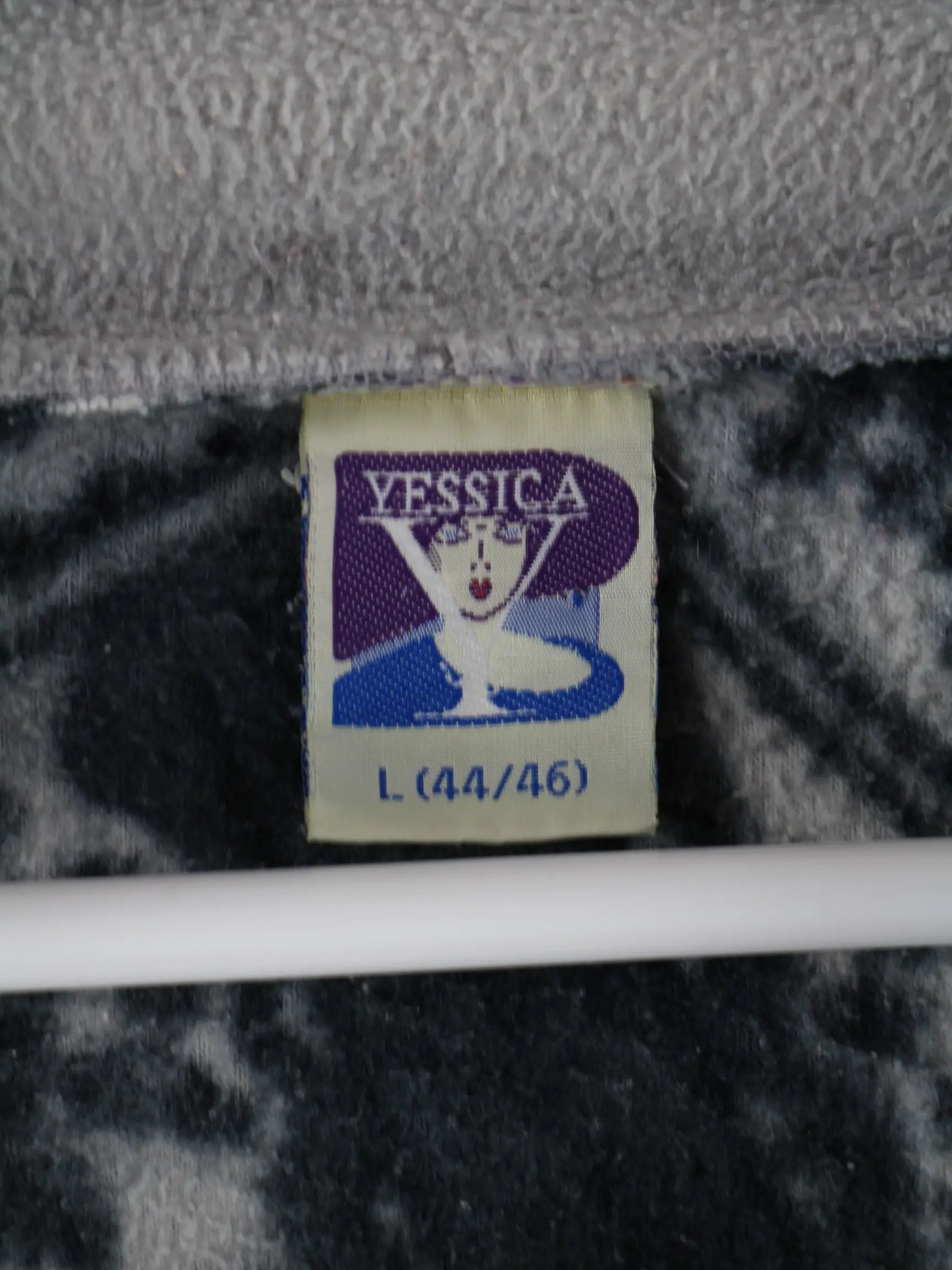 Vintage Leichte Jacke mit kurzem Reißverschluß in Größe L aus den 90'ern. Sie ist aus gemütlichem Fleece und in Grau lieferbar.