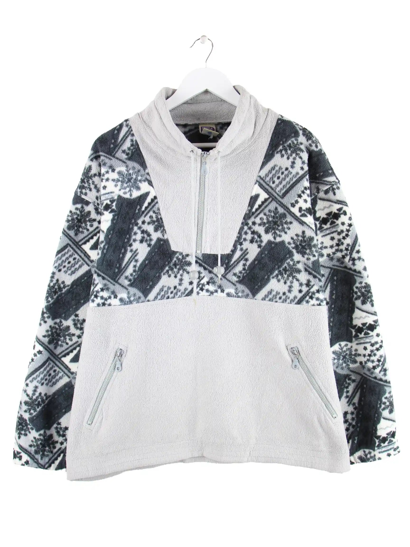 Vintage 90s Crazy Pattern Half Zip Fleece Jacke Grau L