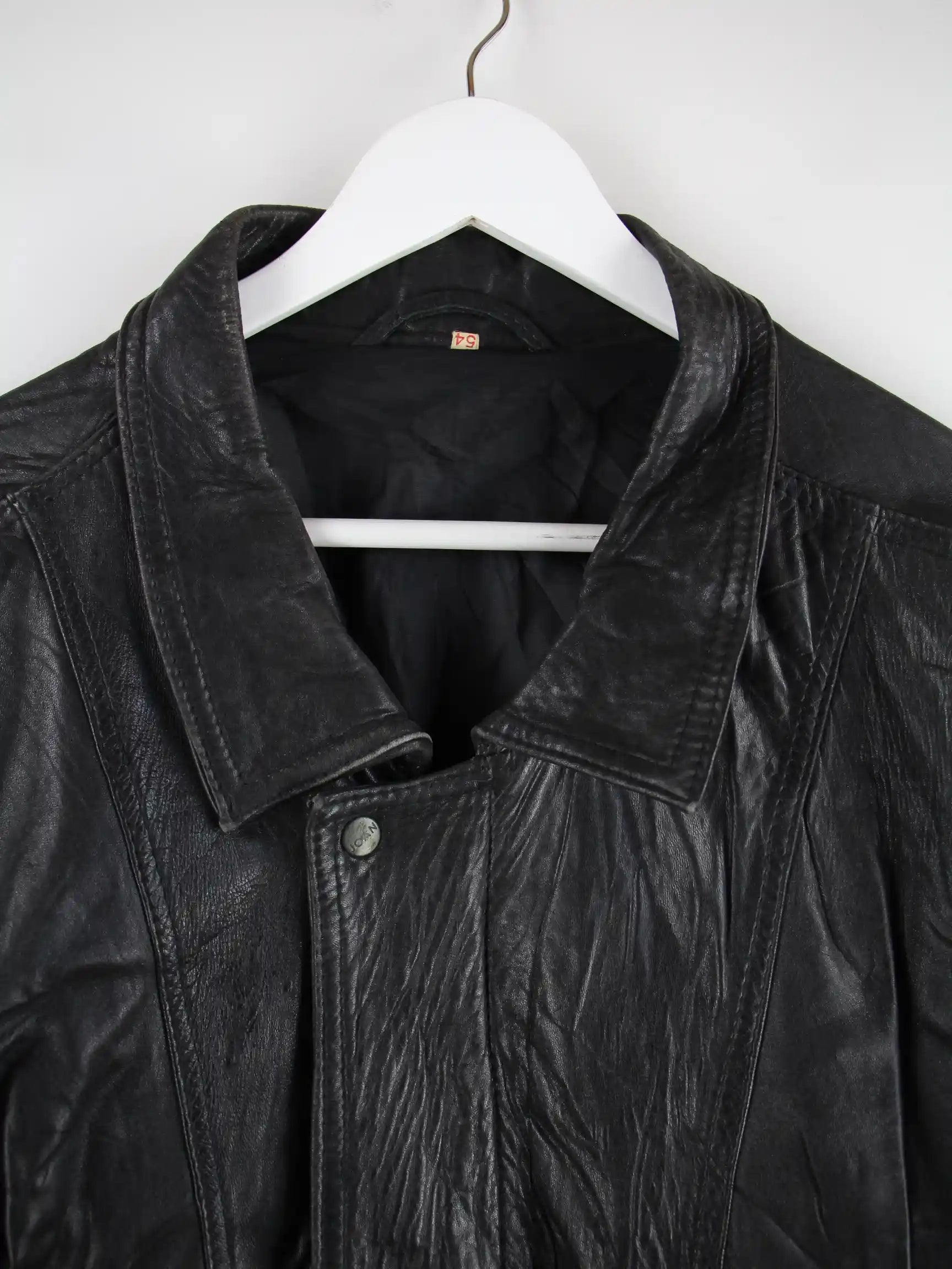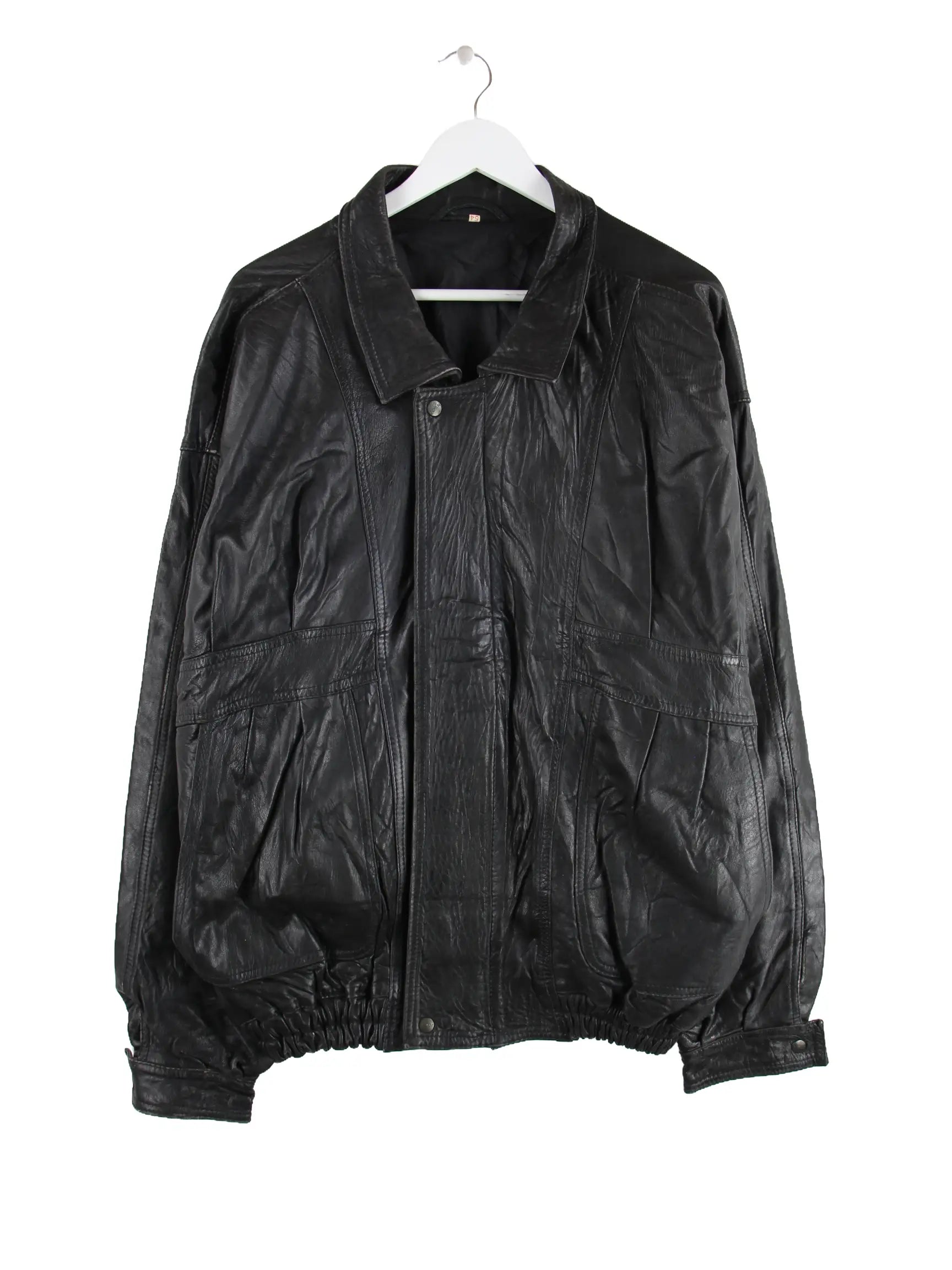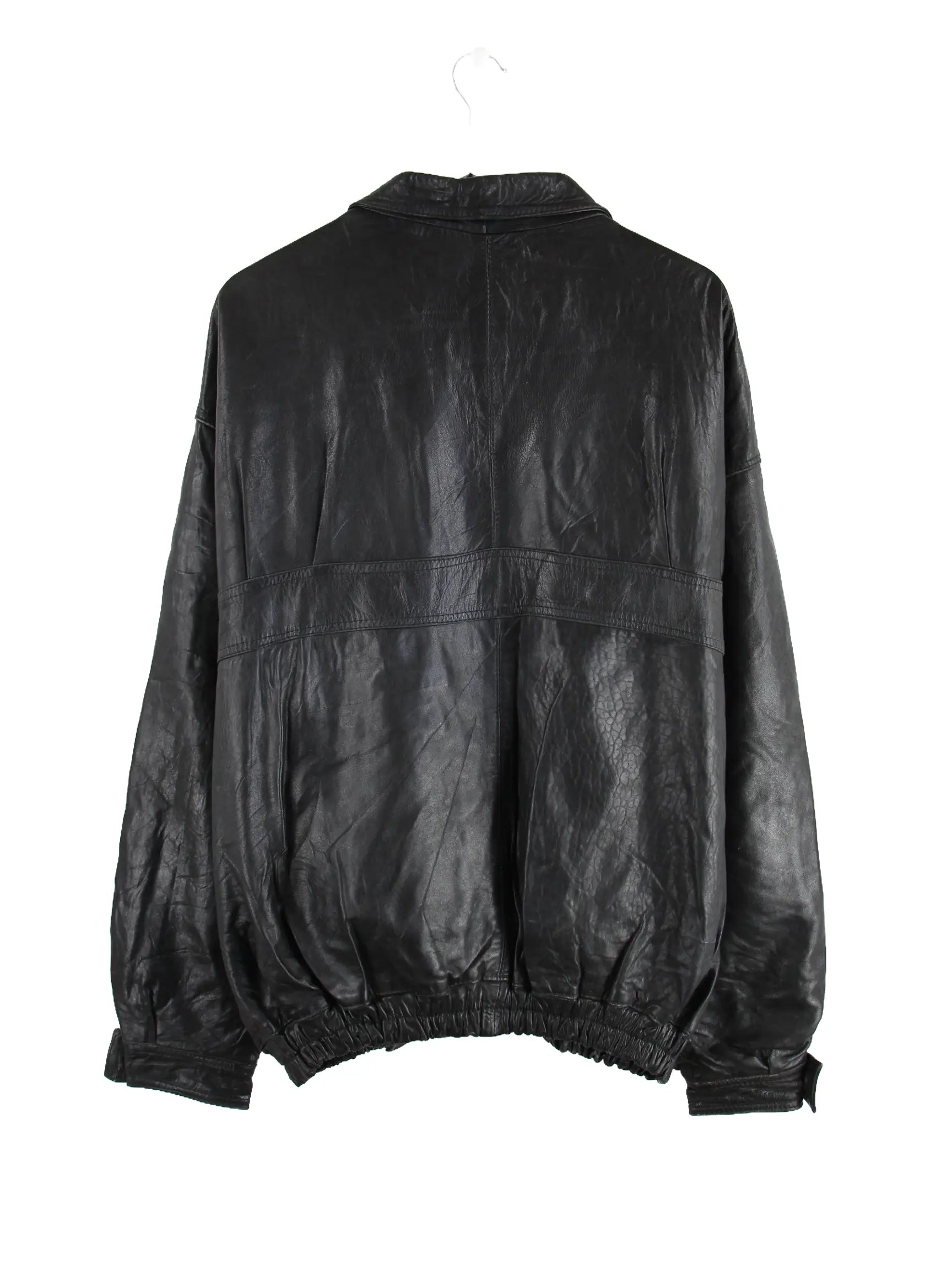 Schwarze Vintage Jacke aus den 90'ern in Größe XXL. Sie ist aus Leder gefertigt und in gutem Zustand zu bekommen.