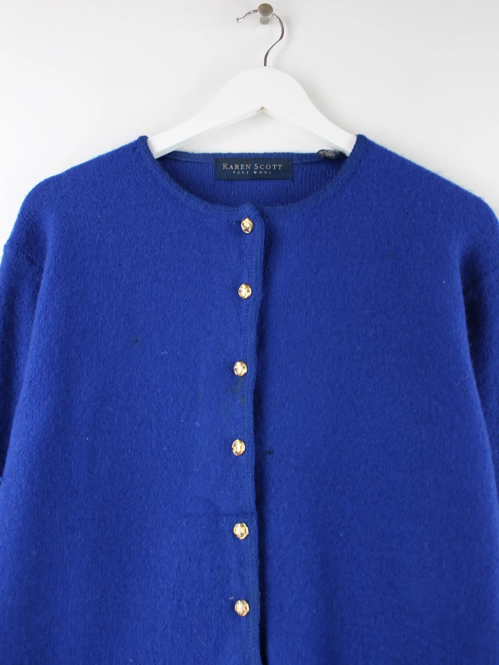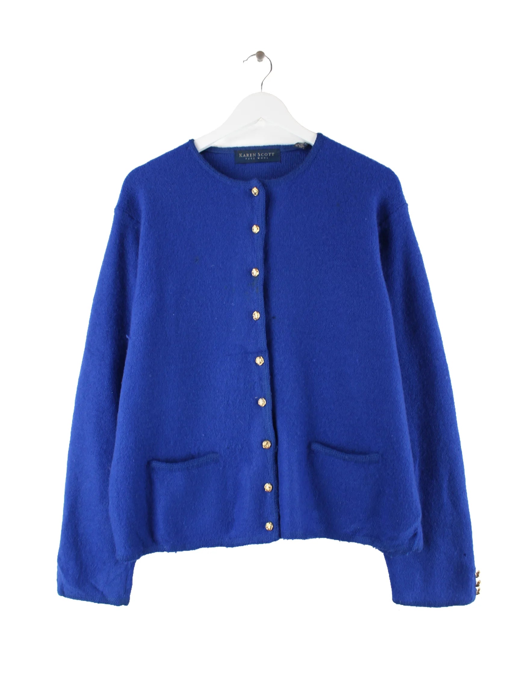 Vintage Damen 00s Woll Strickjacke Blau XL