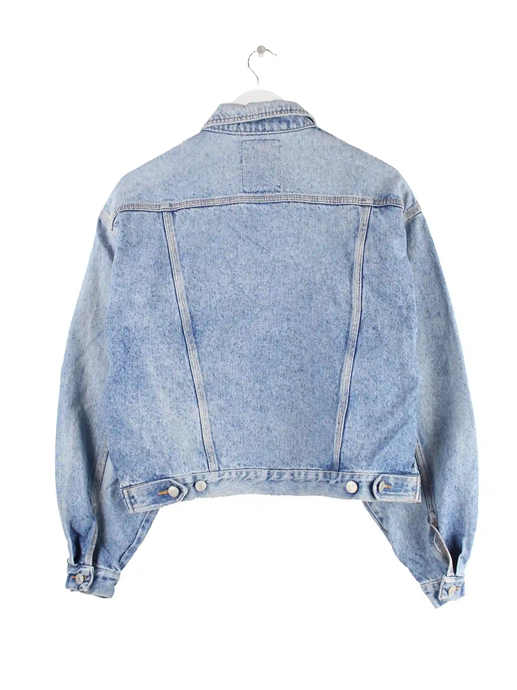 Blaue Vintage Jacke aus den 90'ern in Größe M. Sie ist aus Baumwolle hergestellt und in sehr gutem Zustand bei uns vorrätig.