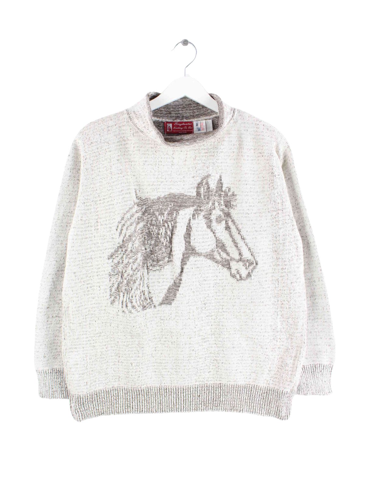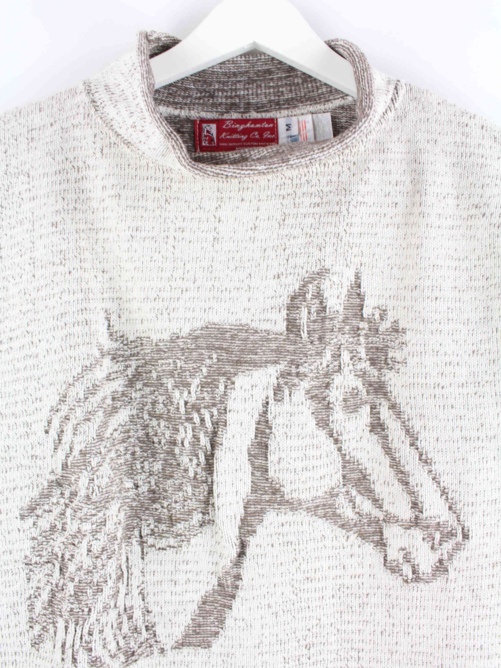 Vintage Damen 90s Knitted Horse Pullover Grau M