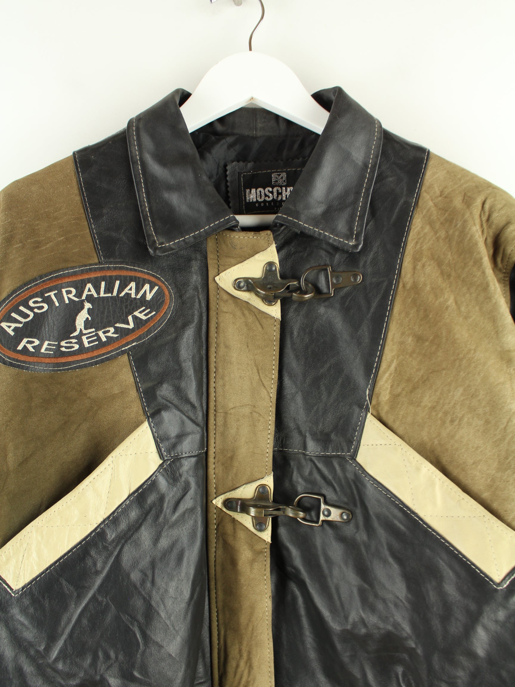 Vintage Jacke in Größe M aus den 90'ern. Sie ist aus Leder angefertigt und in Schwarz zu bekommen.
