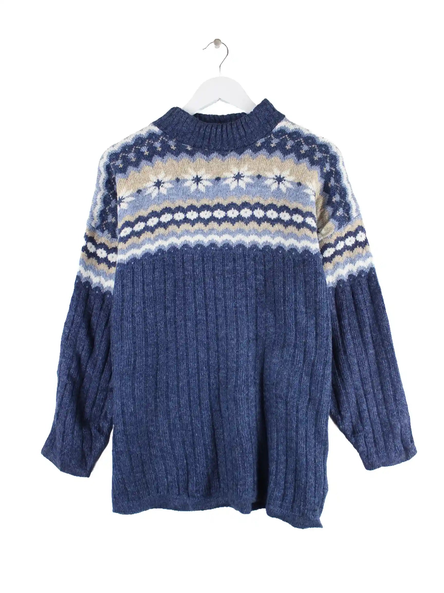 Vintage Damen 90s Pattern Pullover Blau M