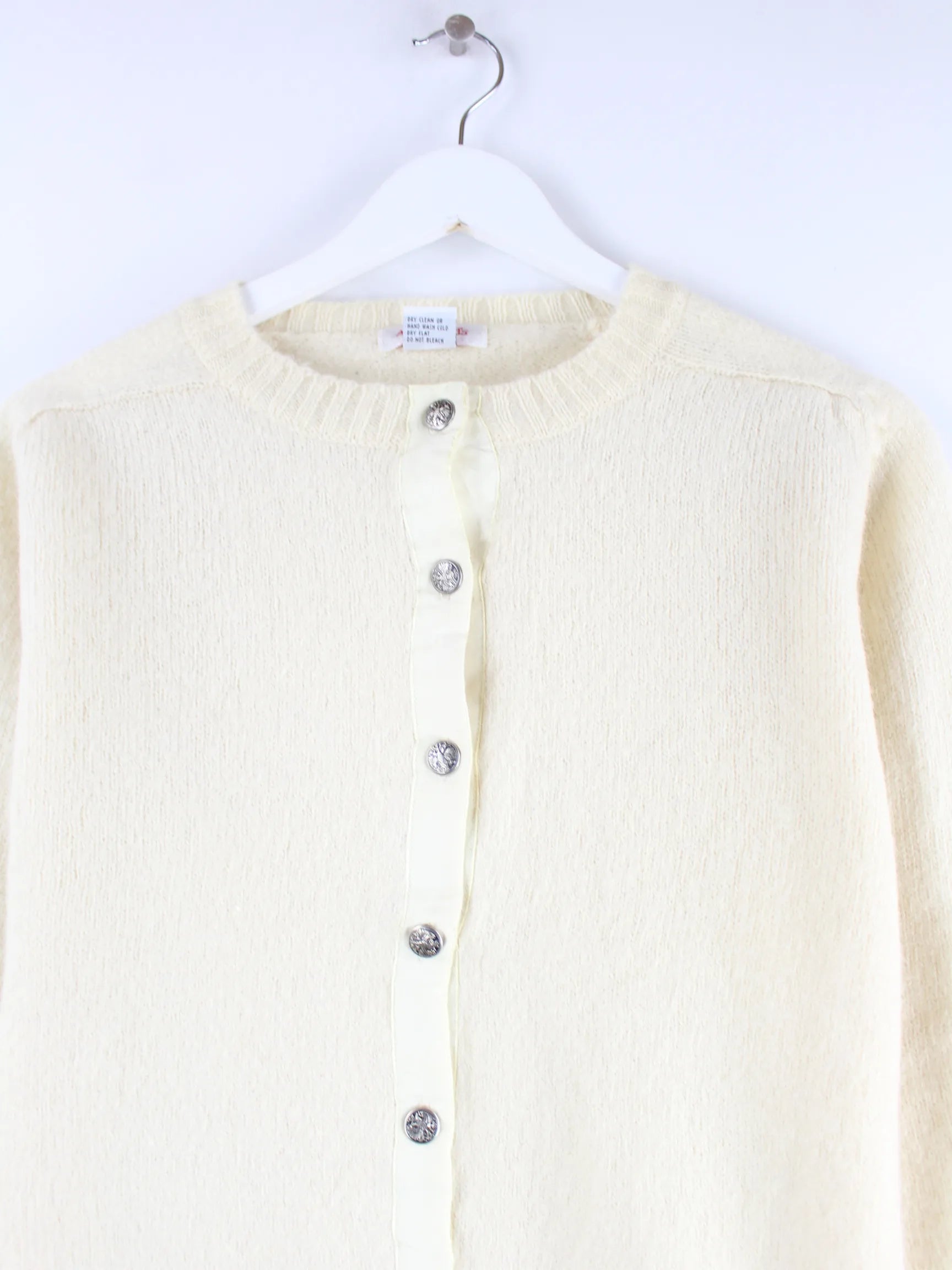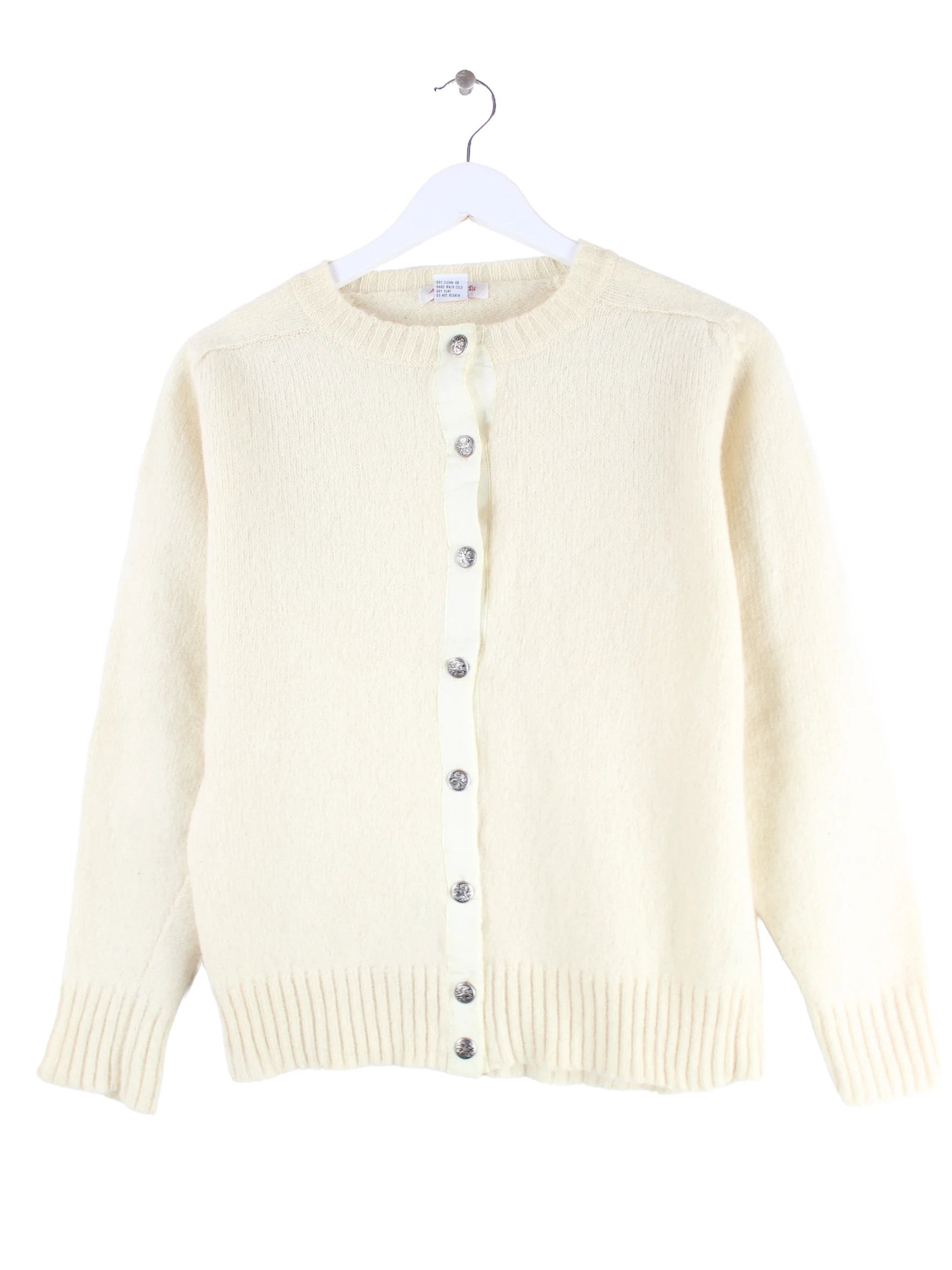 Vintage Strickjacke in Größe S aus den 90'ern. Sie ist aus Wolle angefertigt und in Beige in Stock.