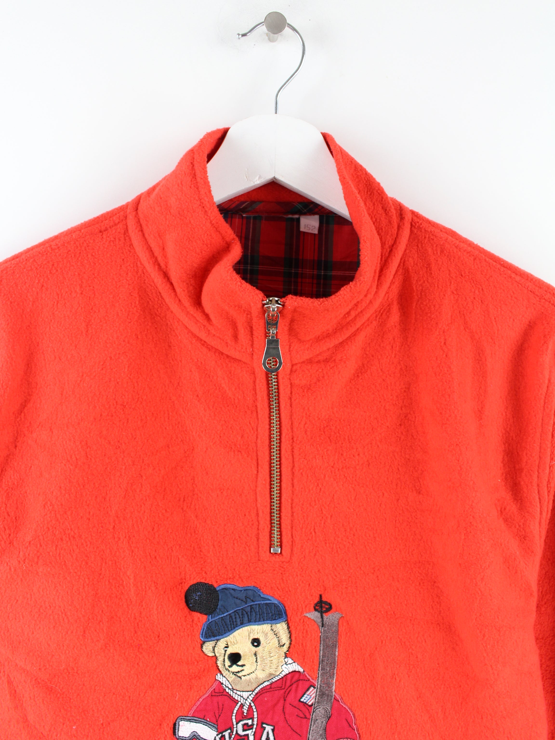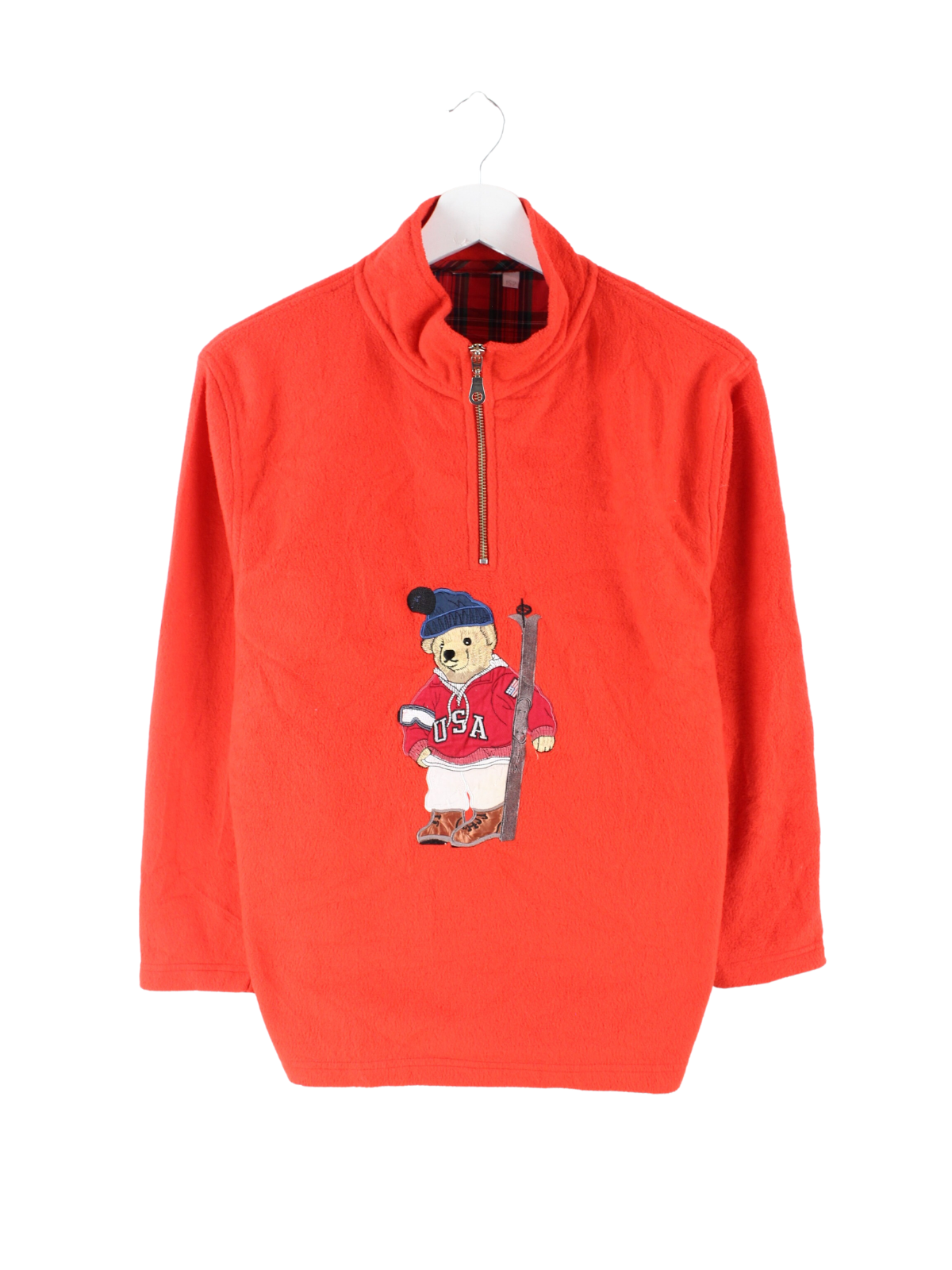 Vintage Damen Bär Stick Zip Sweater Rot XS