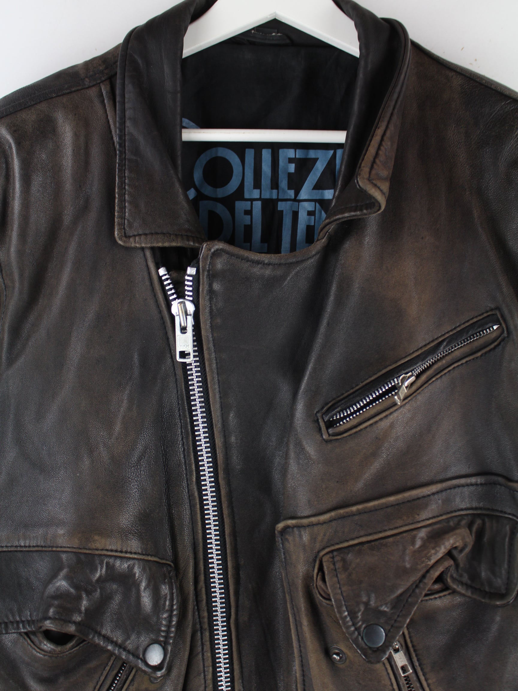 Braune Vintage Jacke in Größe L. Sie ist aus Leder gefertigt und in sehr gutem Zustand zu haben.