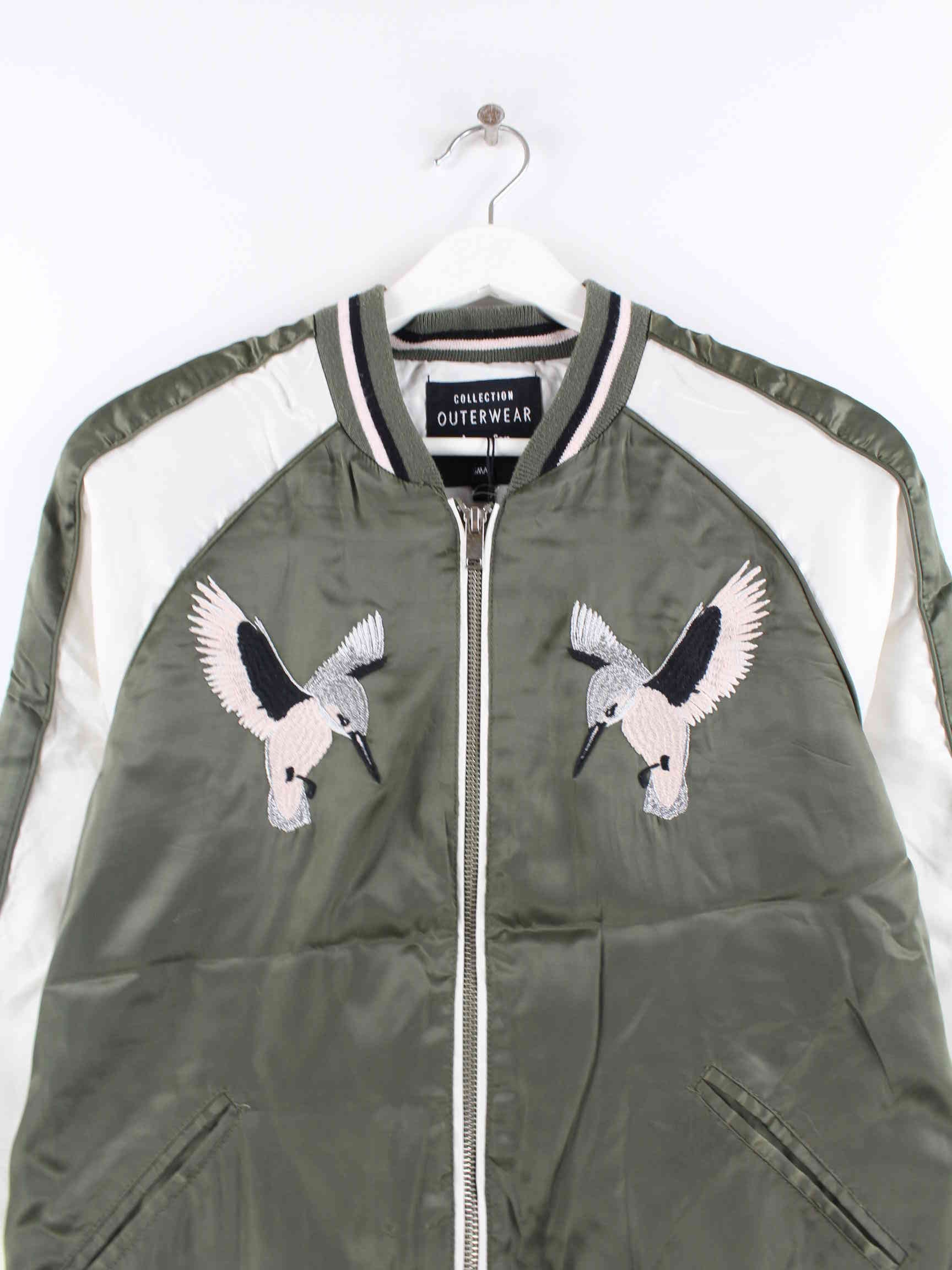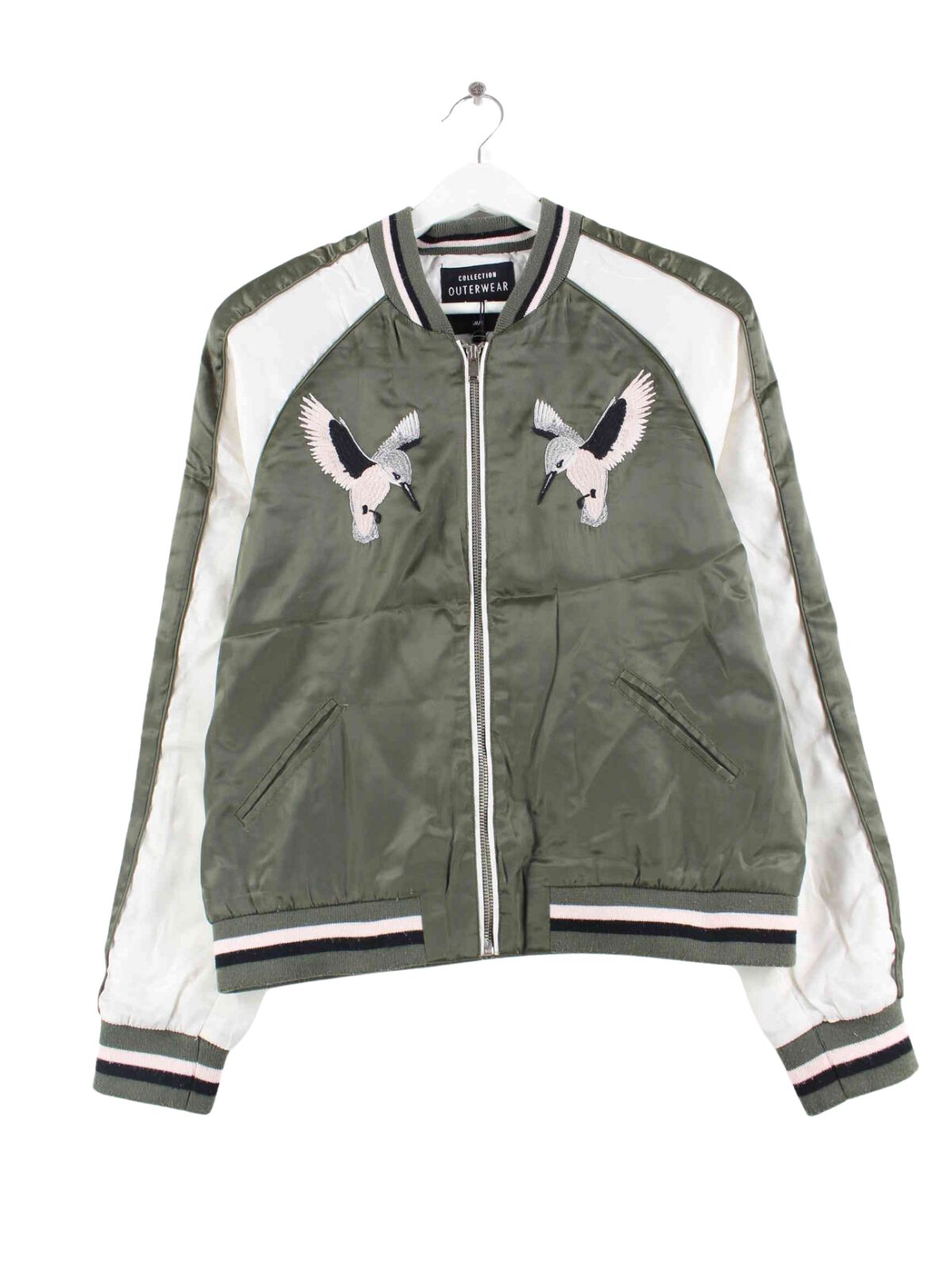 Vintage Damen Bird Embroidery Sweatjacke Olive S