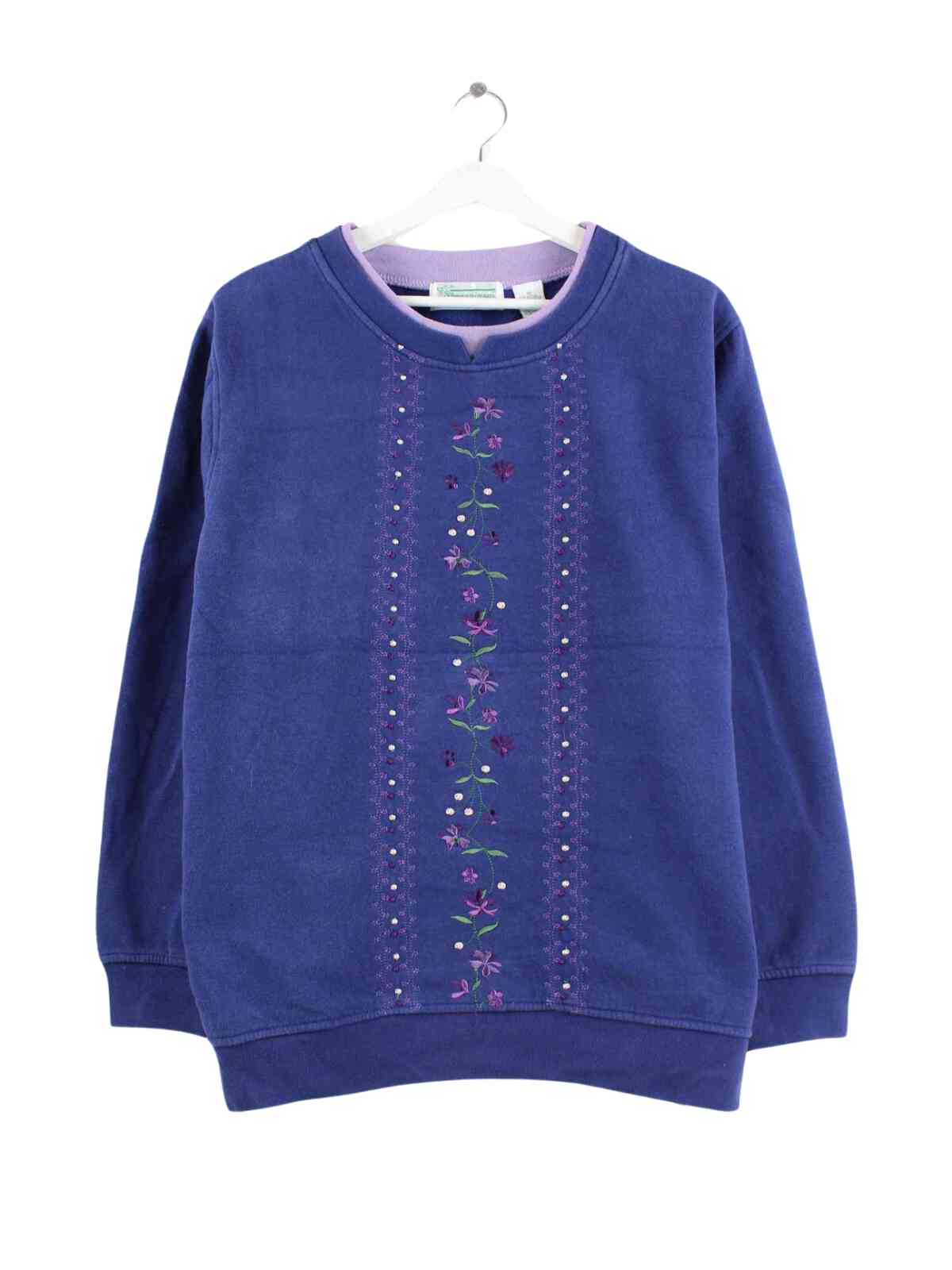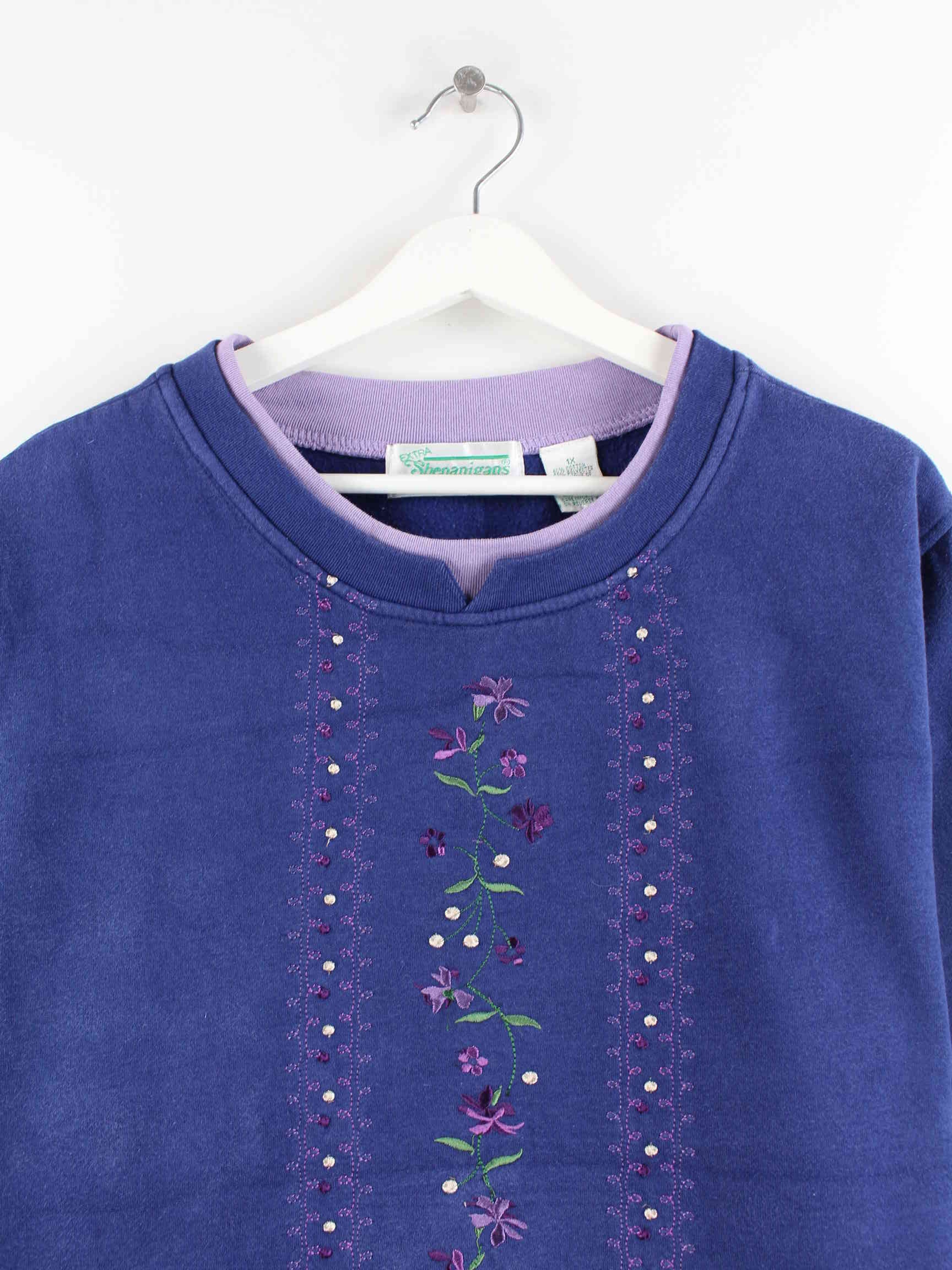 Vintage Damen Embroidered Sweater Blau XL