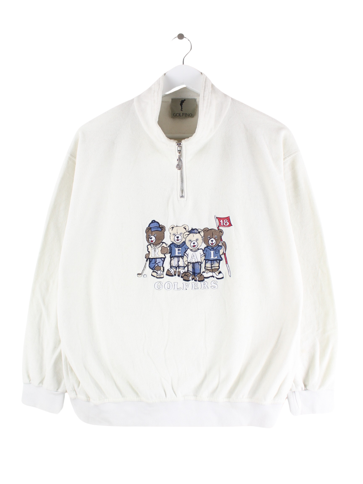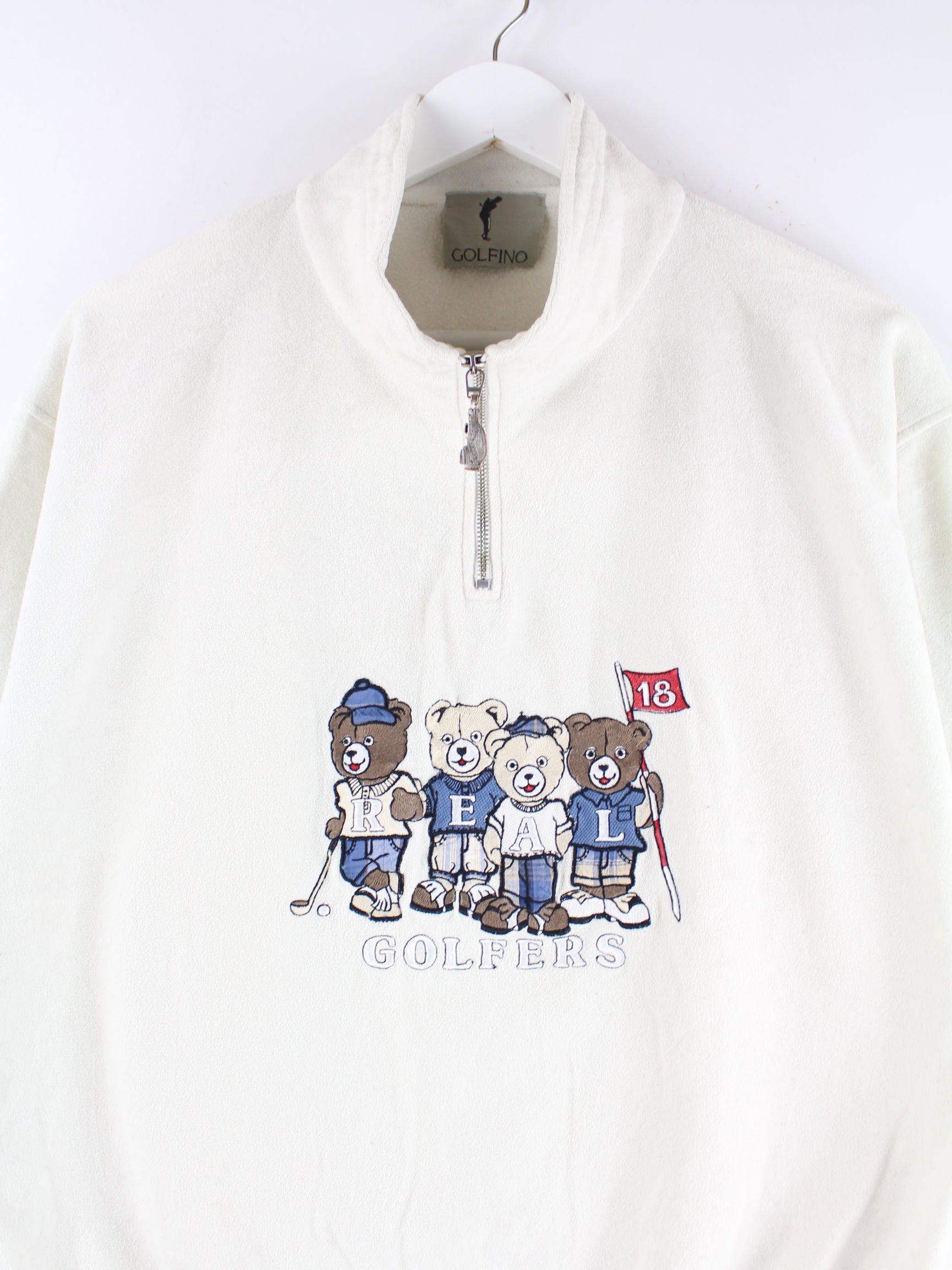 Vintage Damen Golfino Fleece Half Zip Sweater Beige L