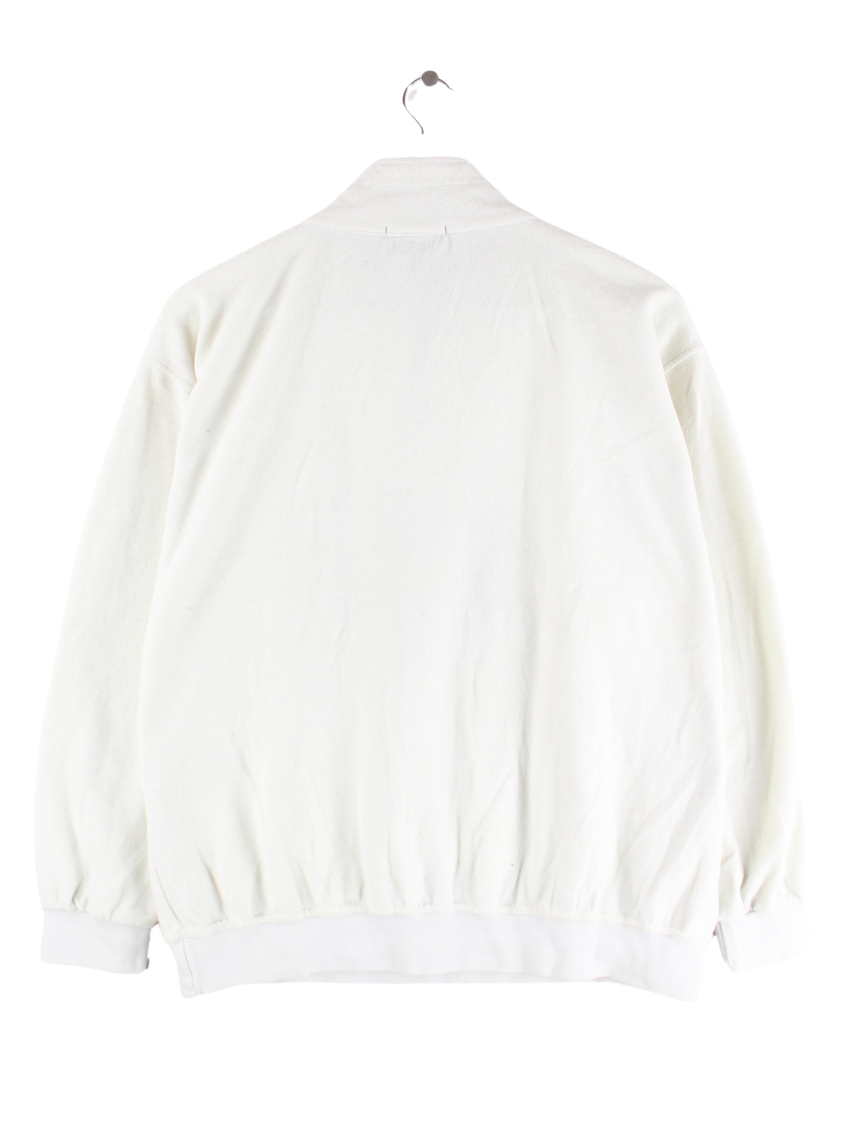 Vintage Sweater mit half Zip in Größe L. Er ist aus kuscheligem Fleece produziert und in Beige bei uns zu bekommen.