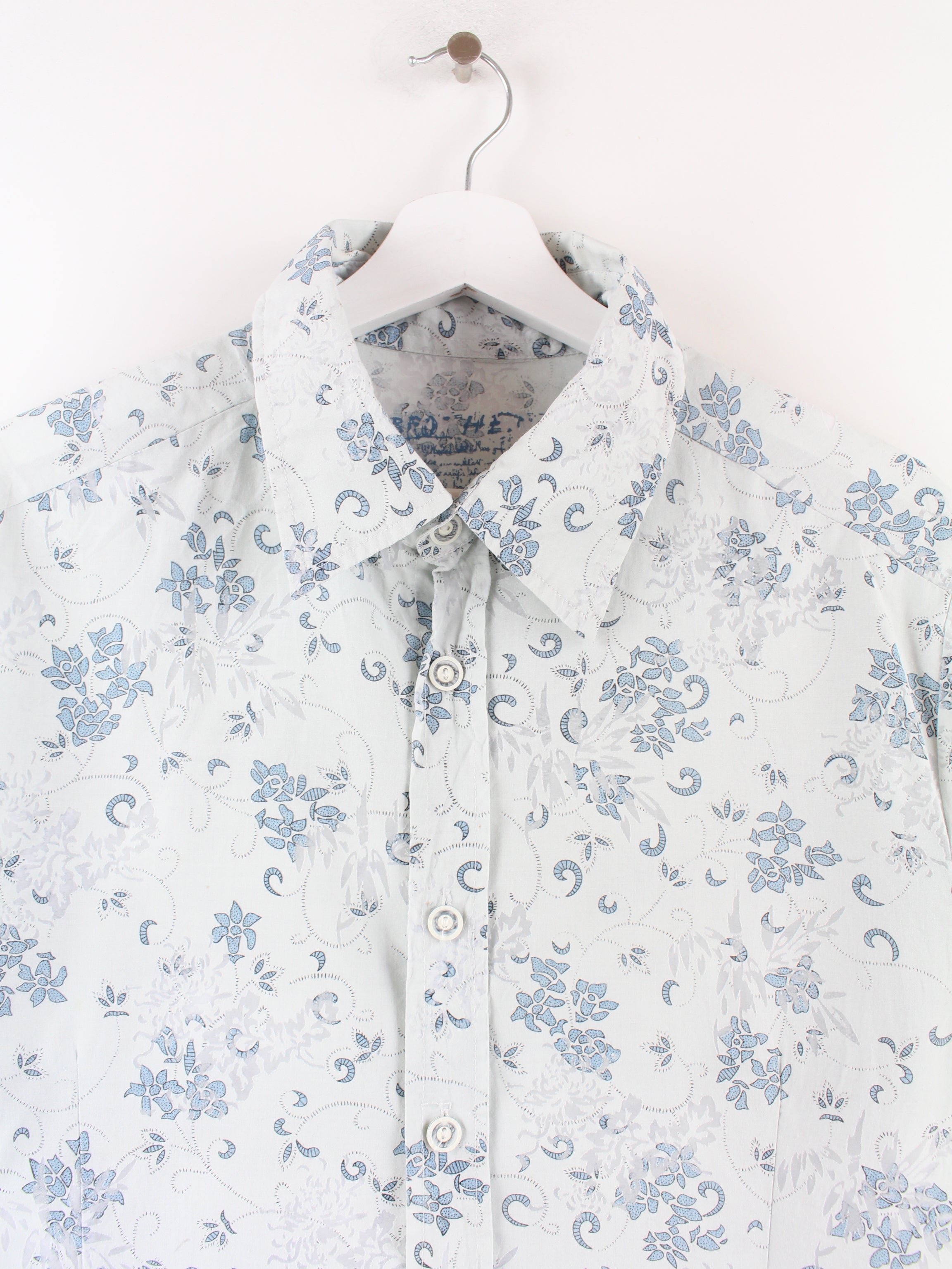 Vintage Damen Hawaii Hemd Weiß / Blau L