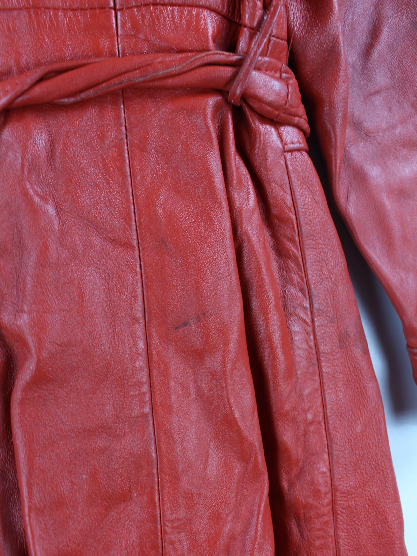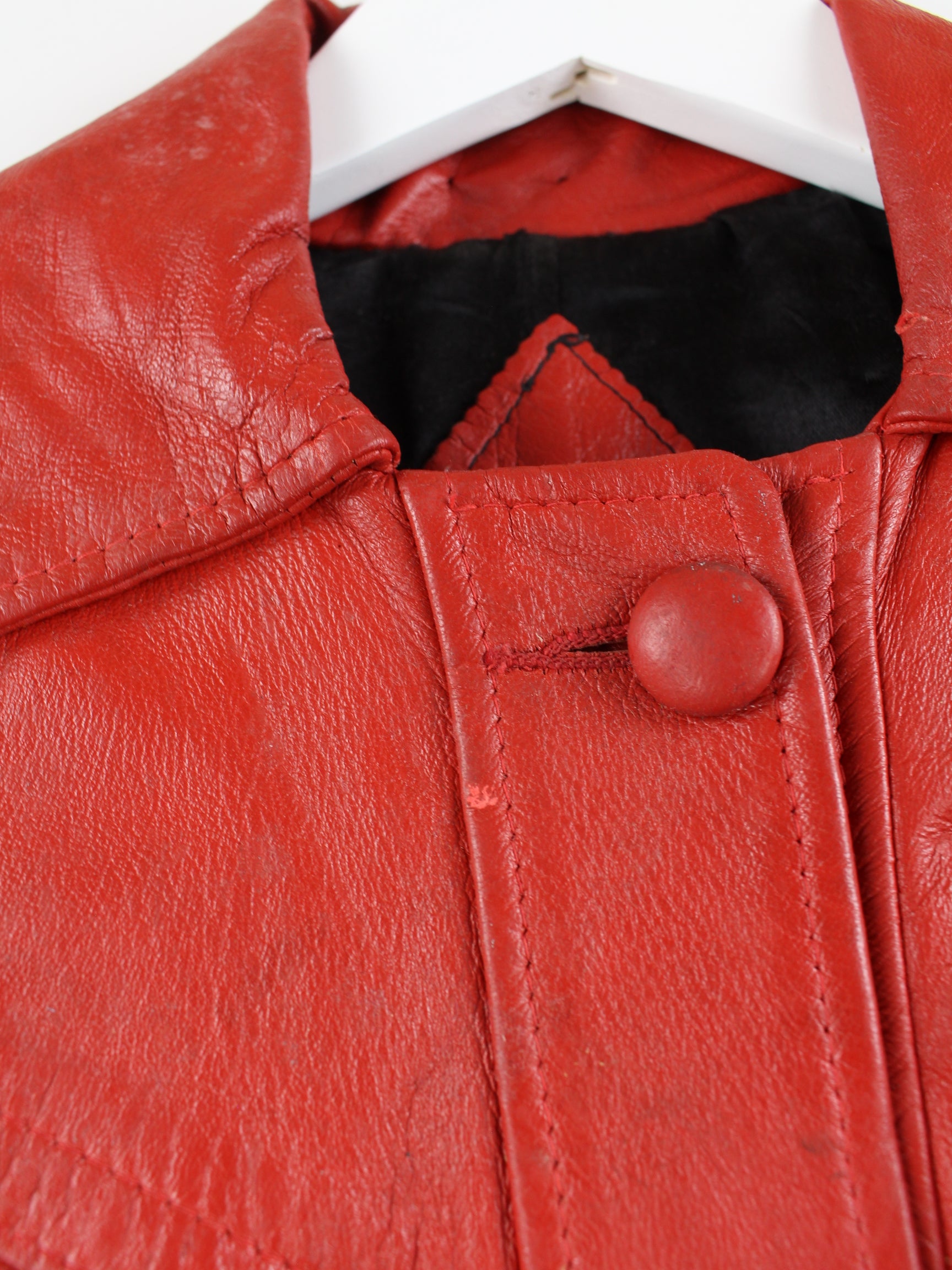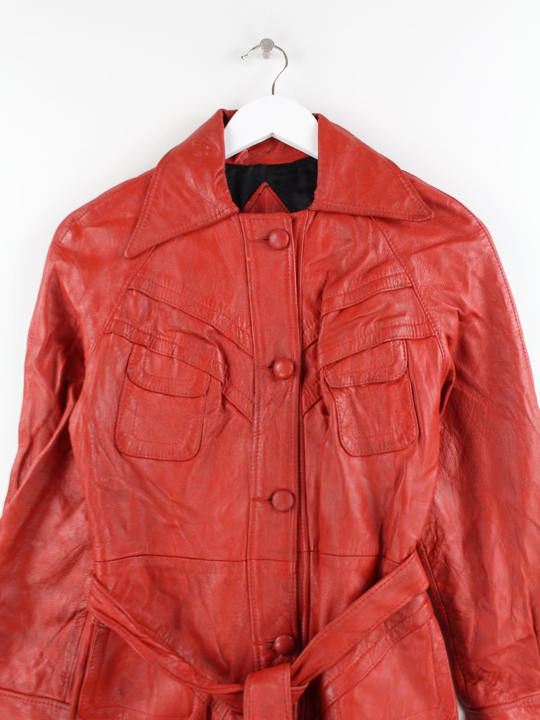 Vintage Damen Leder Mantel Rot L