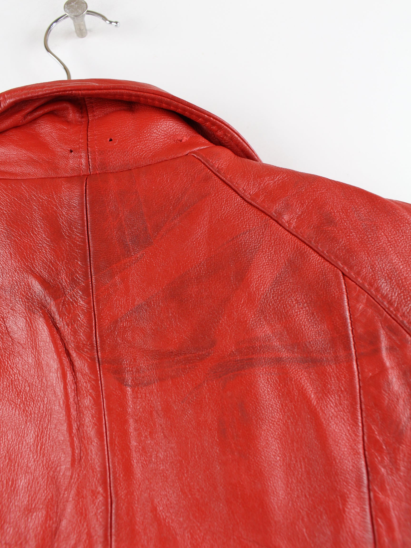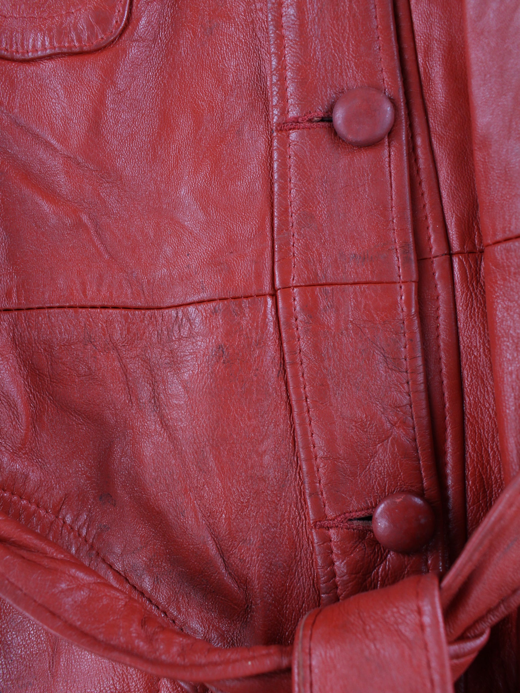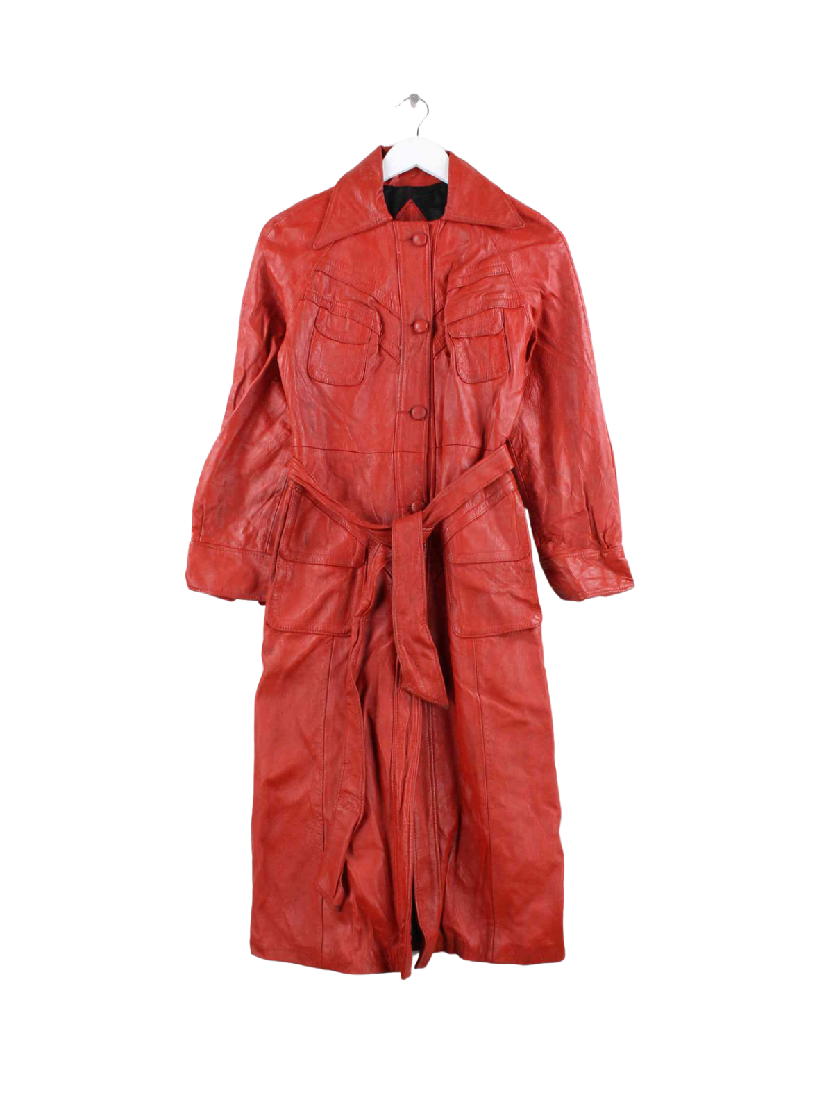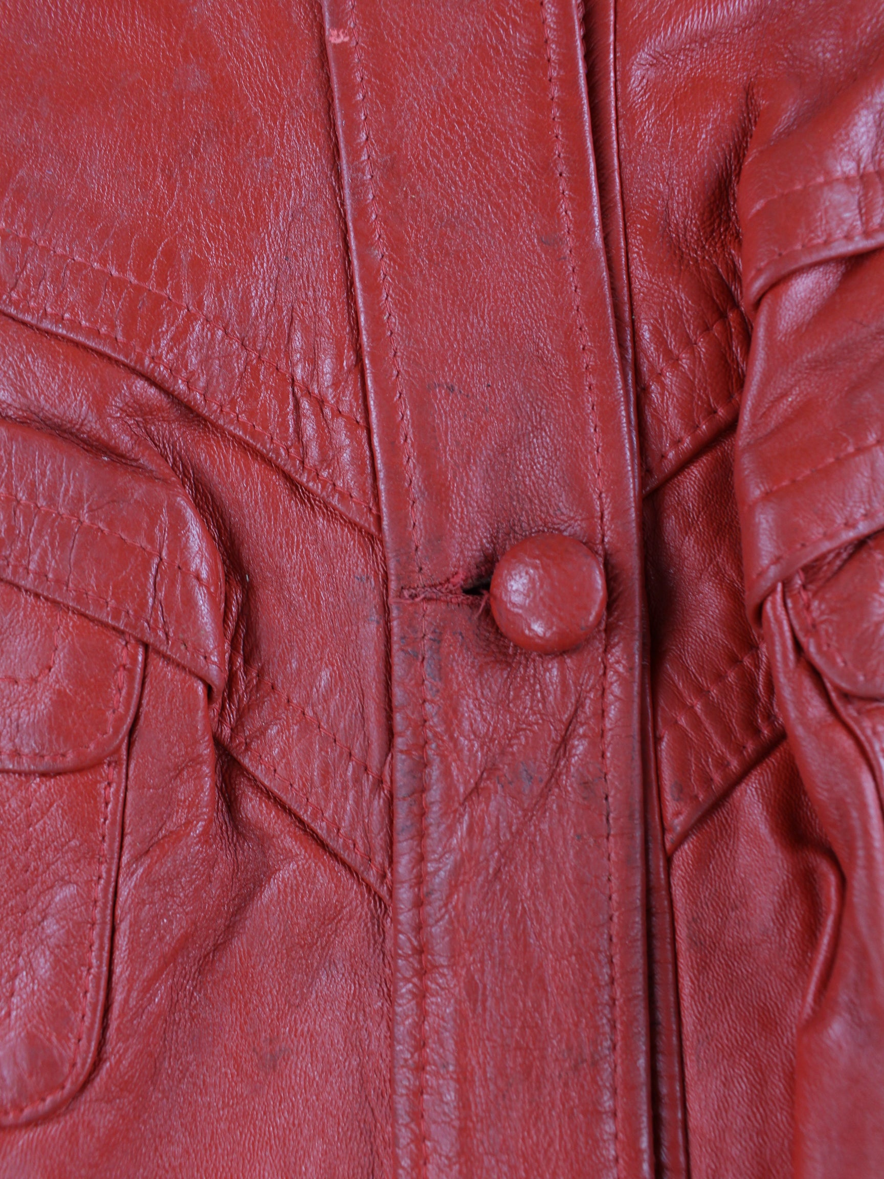 Vintage Damen Leder Mantel Rot L