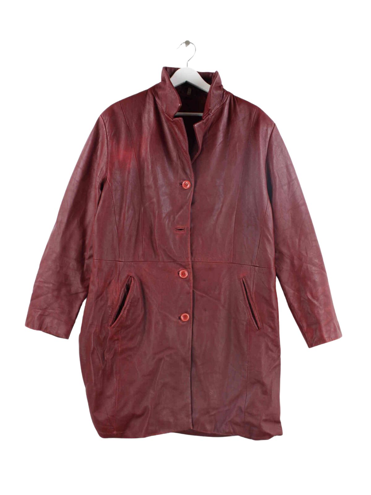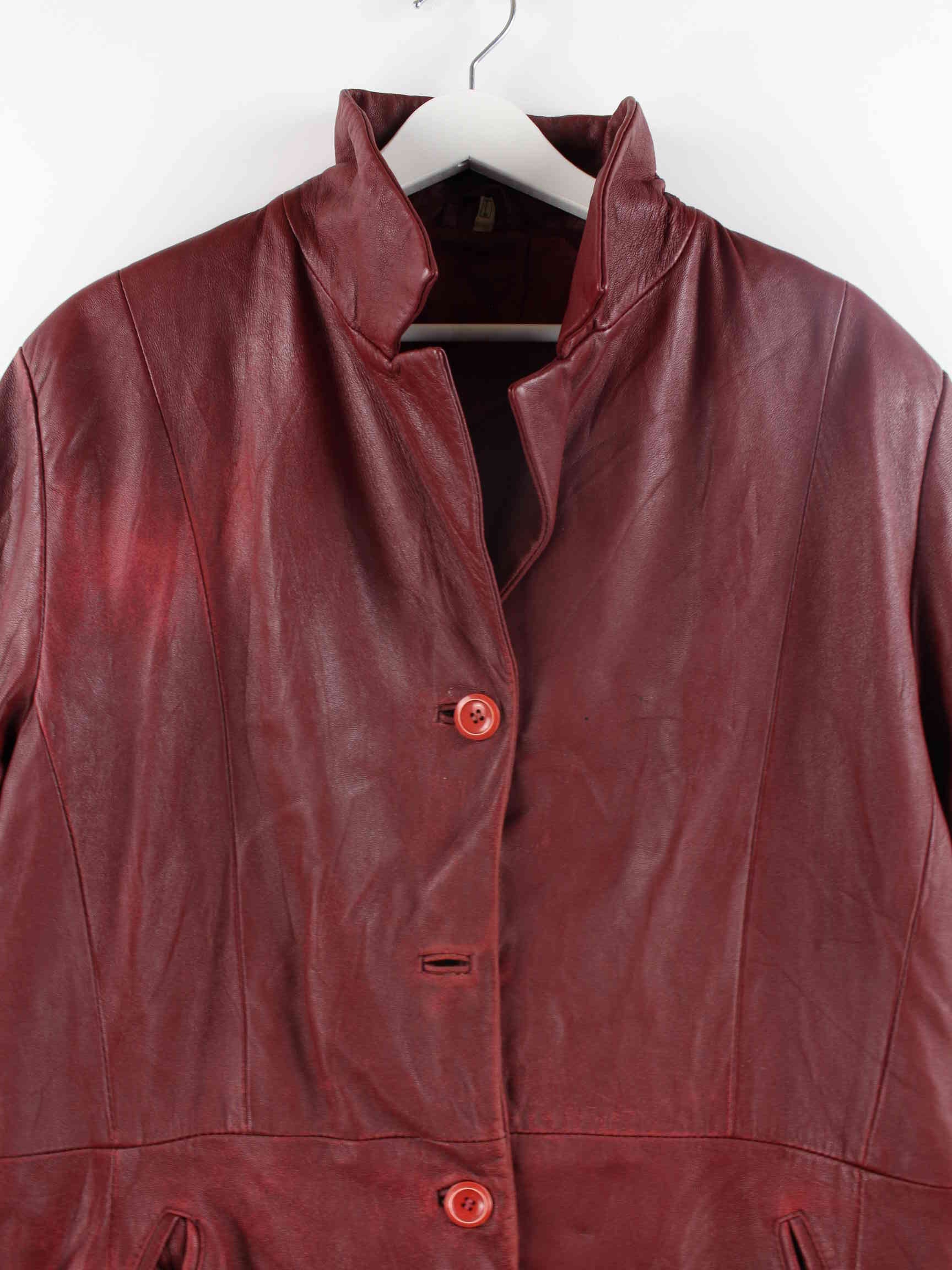 Vintage Damen Leder Mantel Rot L