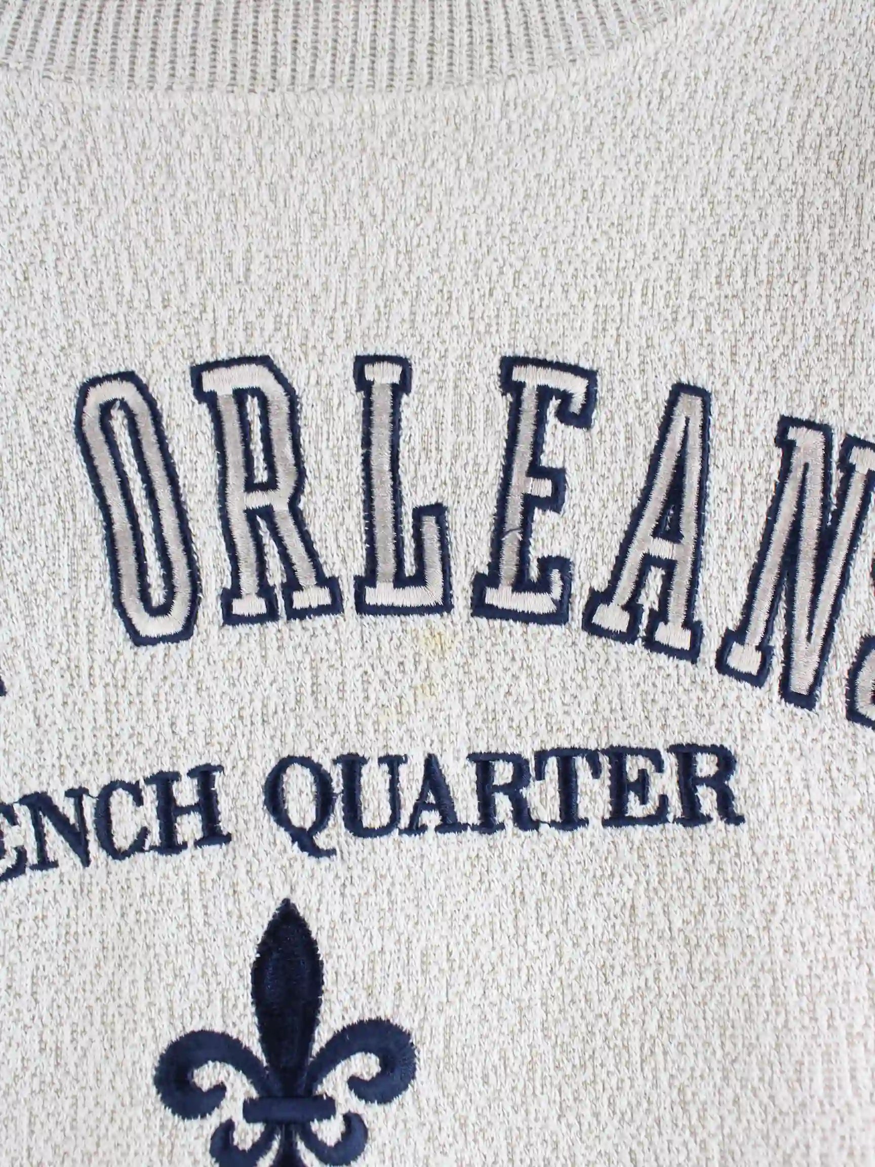 Vintage Sweater in Größe M. Er ist aus einer Baumwollmischung gemacht und in Grau zu bekommen.