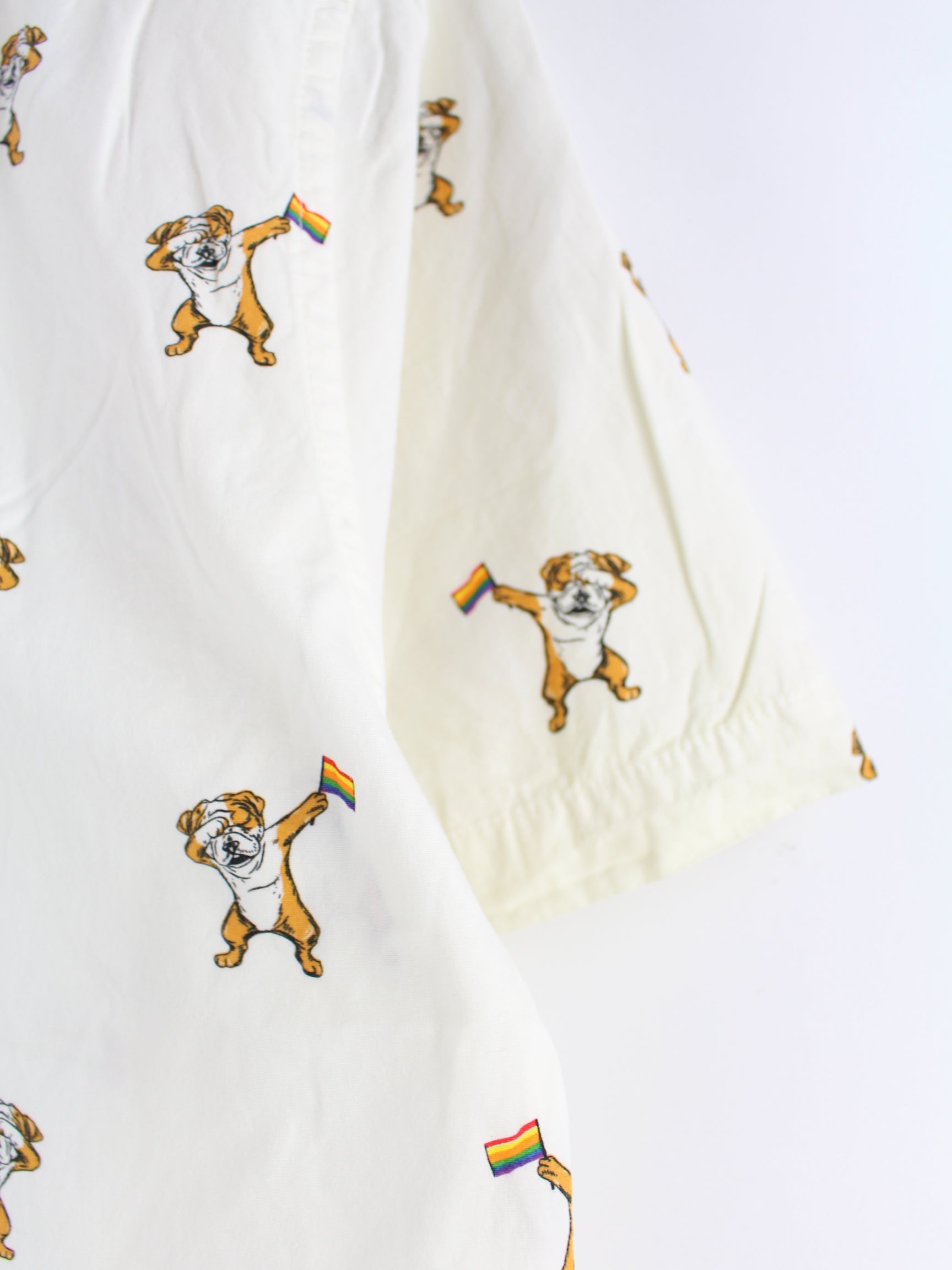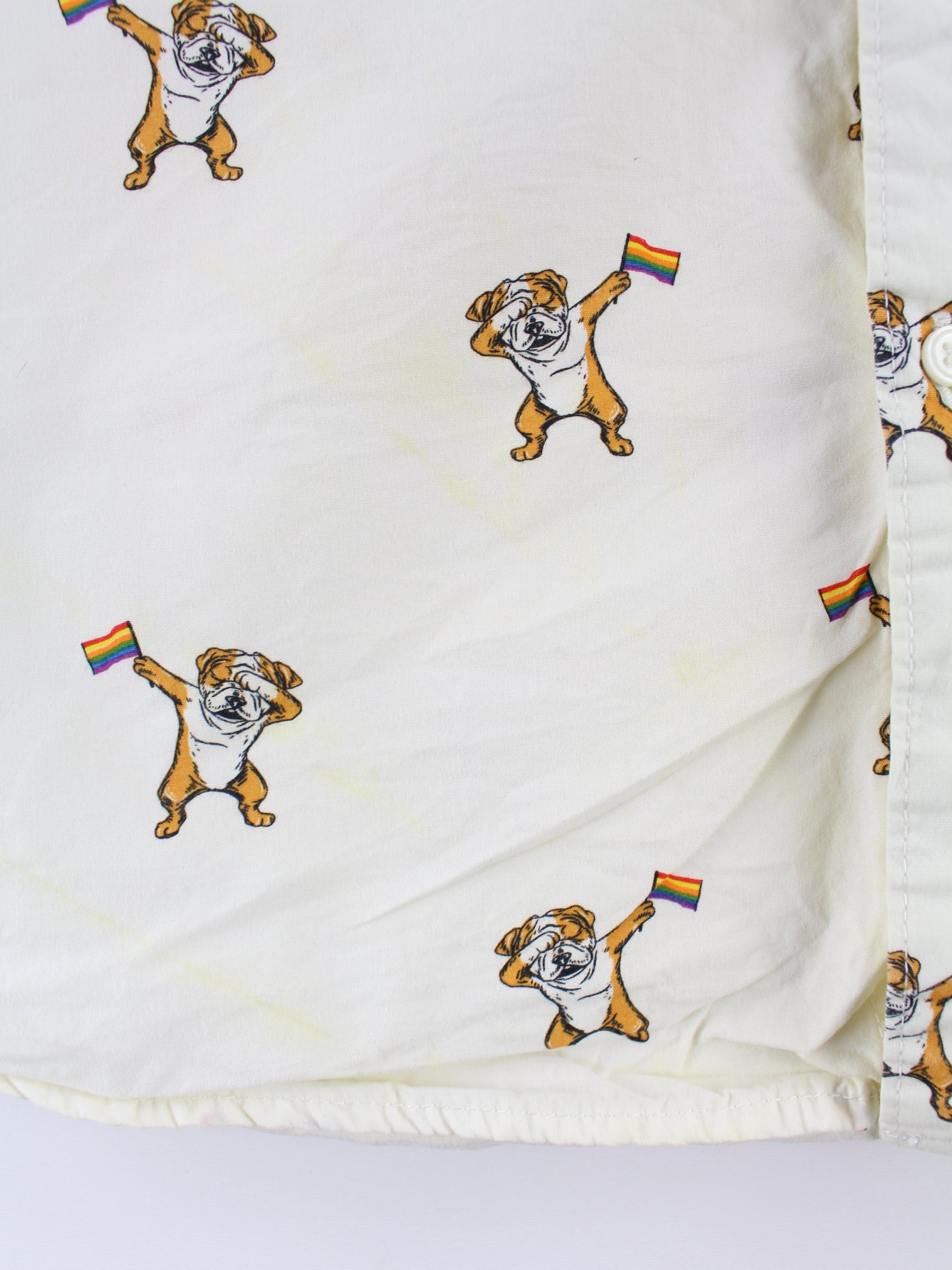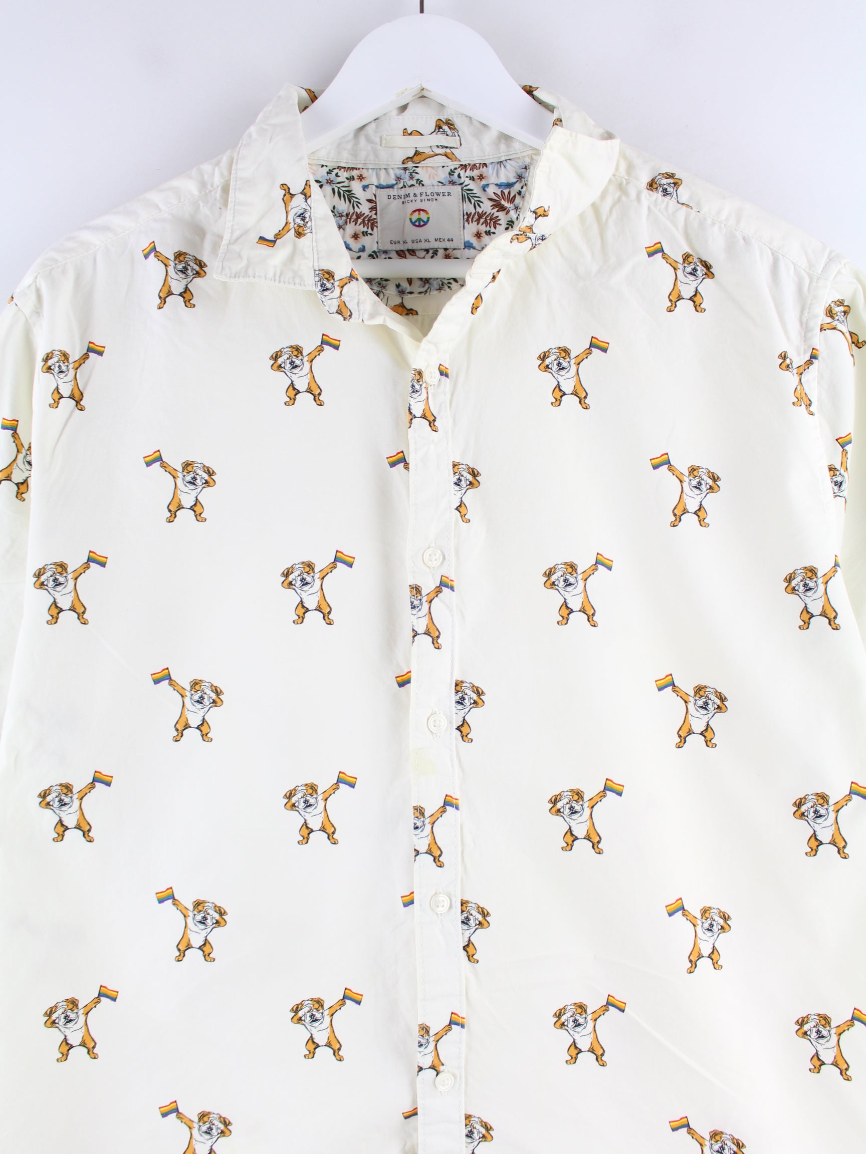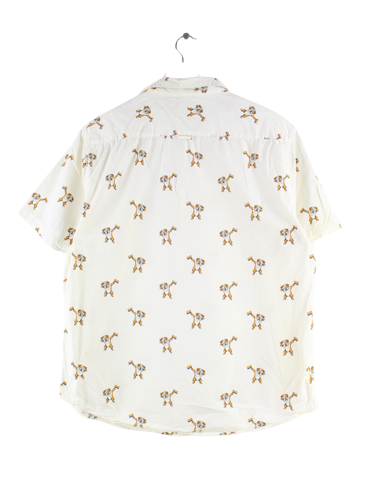 Vintage Dog Rainbow Pattern Kurzarm Hemd Beige XL