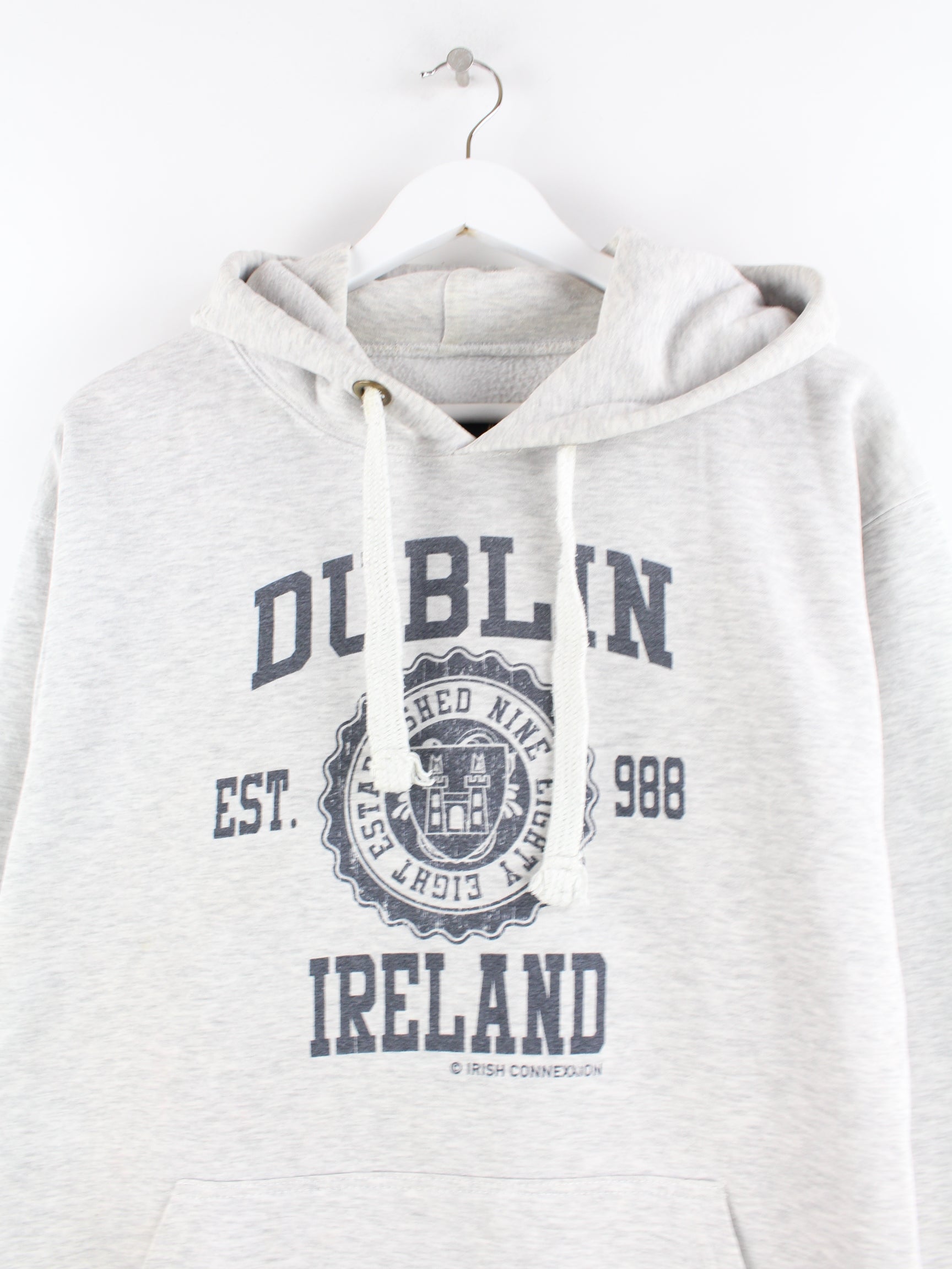 Netter Vintage Hoodie in Größe XL. Er ist aus einer Baumwollmischung hergestellt und in Grau in Stock. Mit tollem Dublin Print.