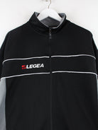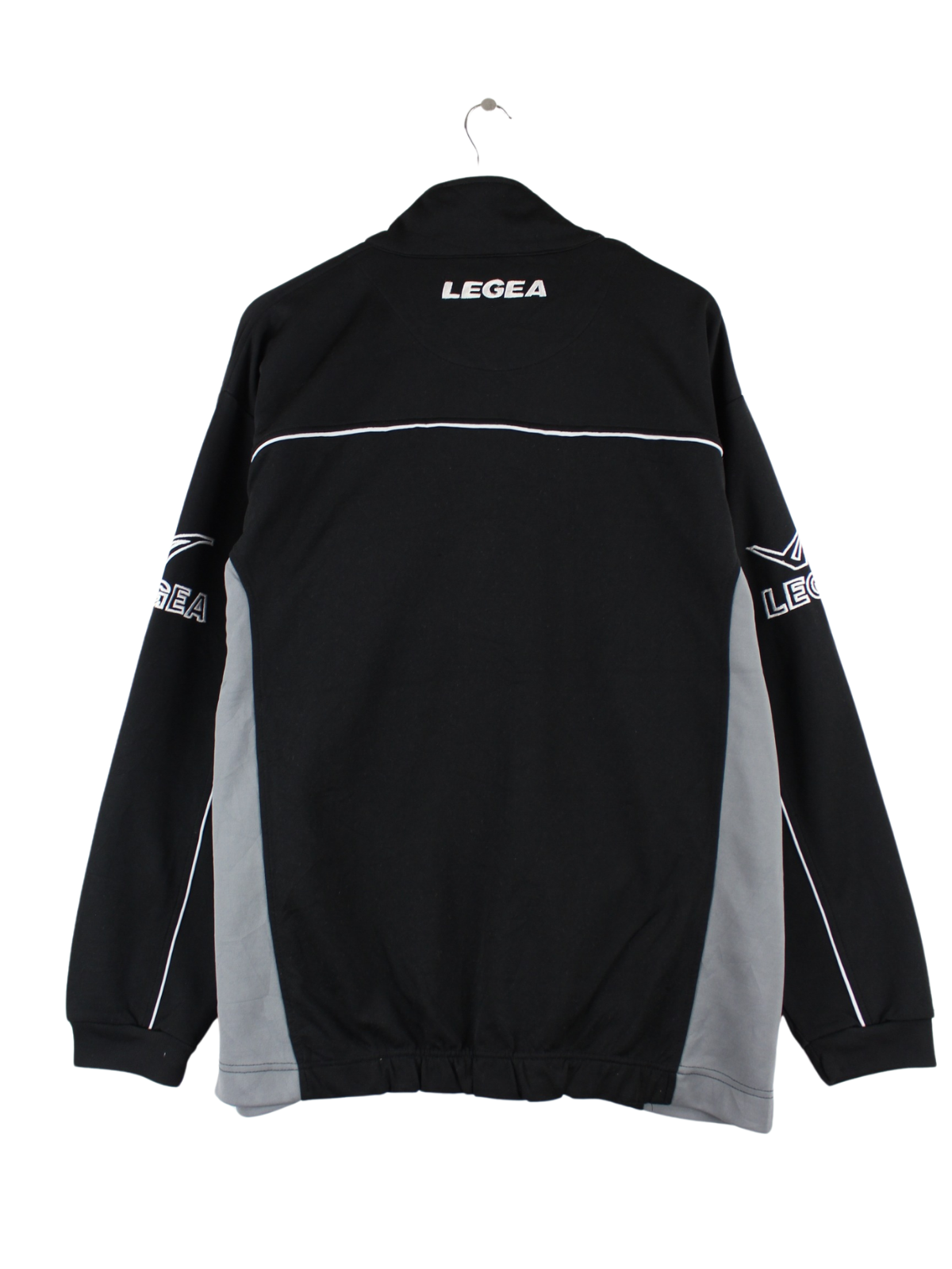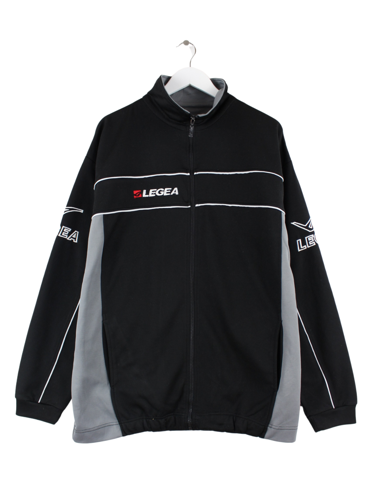 Vintage Trainingsjacke mit gestickten Motiven in Größe XL. Sie ist aus Synthetik produziert und in Schwarz im Bestand.