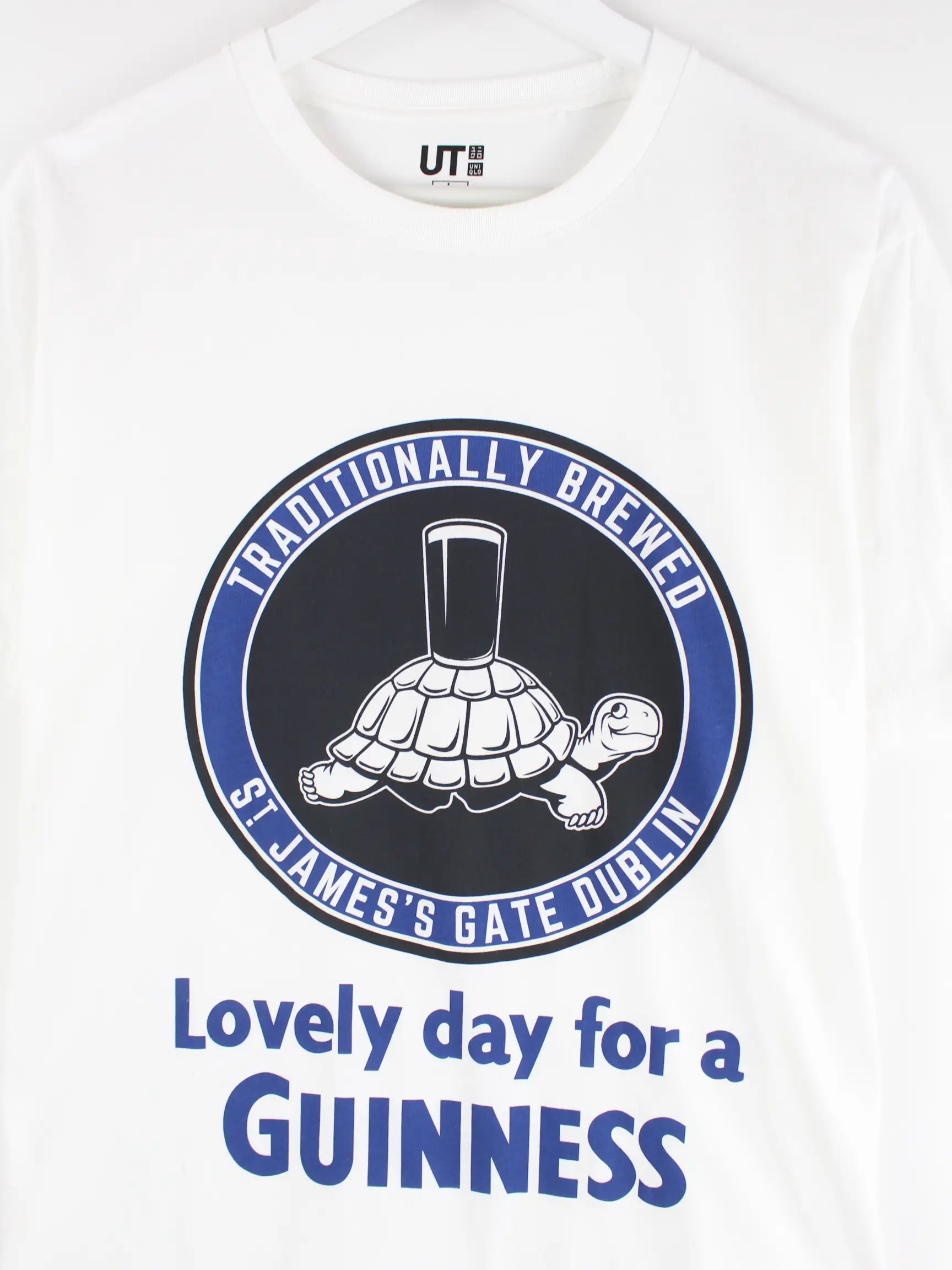 Weißes Vintage T-Shirt in Größe L. Es ist aus Baumwolle gemacht und in sehr gutem Zustand zu haben. Mit chiquem Guinness Print.